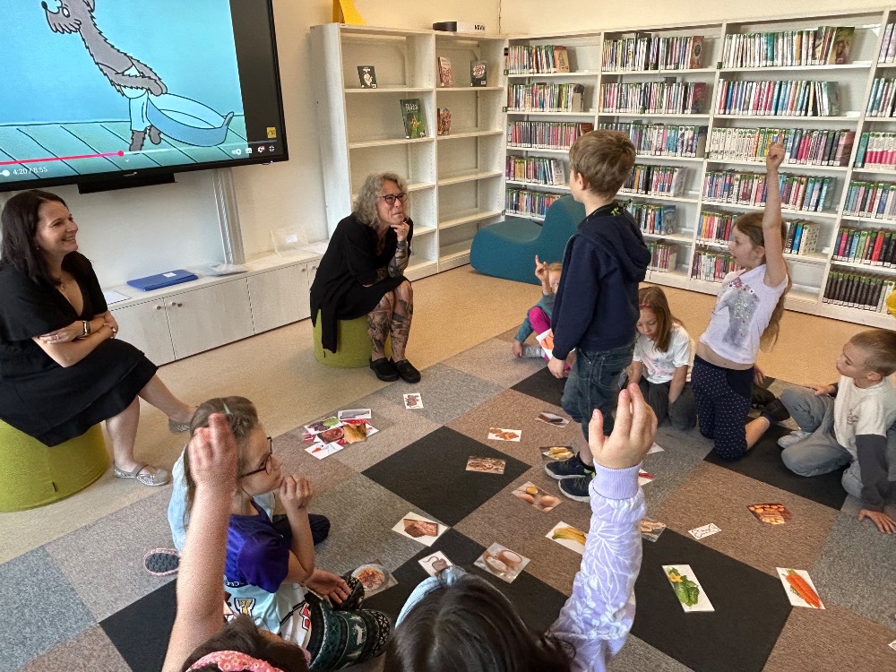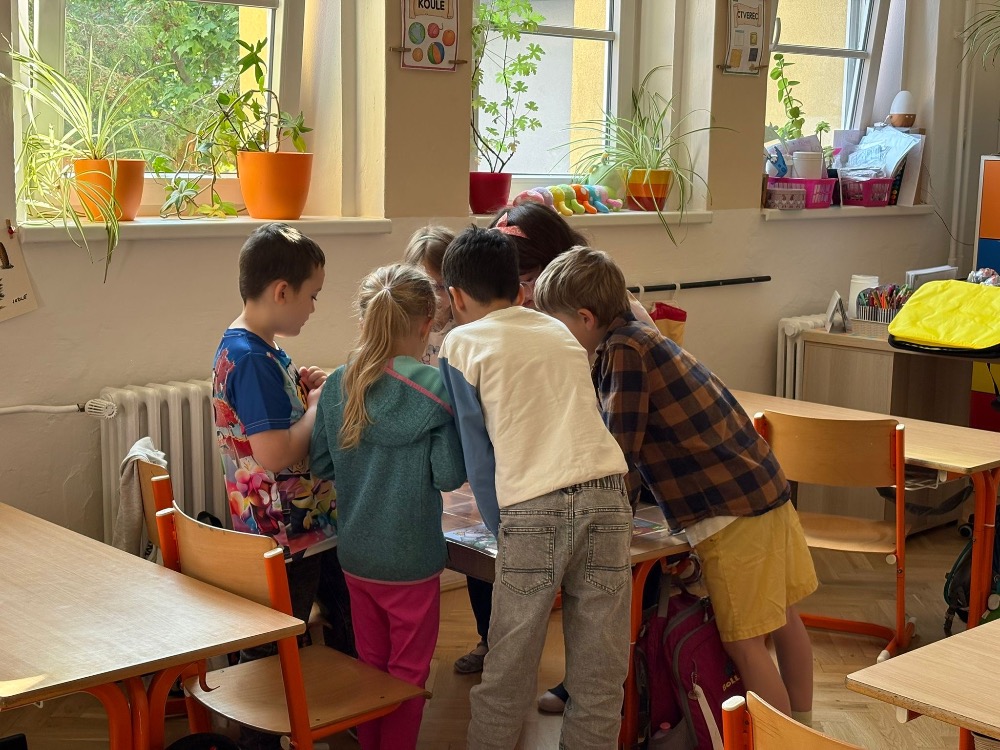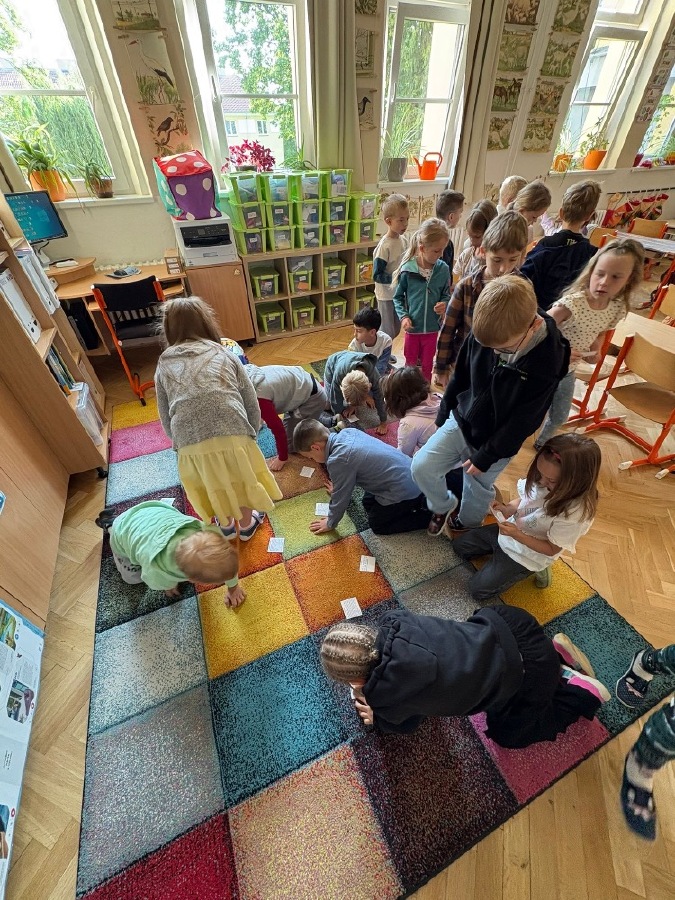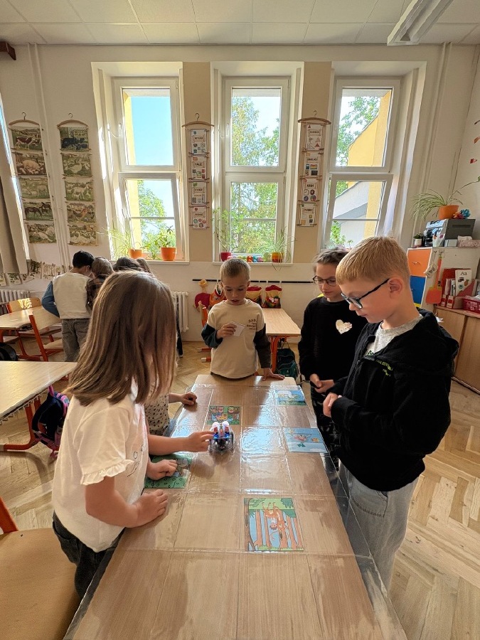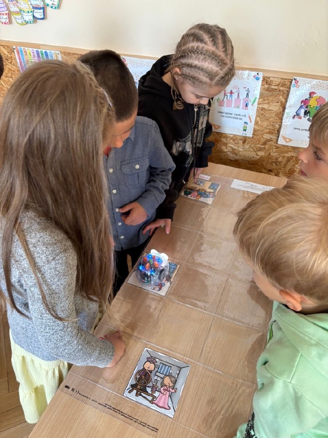 Ve čtvrtek jsme zakončili celoroční putování pohádkovým světem. Ráno jsme si nejprve ve dvojicích zahráli kvíz. Ve skupinkách pak děti určovaly podle obrázků názvy pohádek, hledaly k nim úryvky a následně pomocí Blue-Botů cestovaly z pohádky do pohádky.