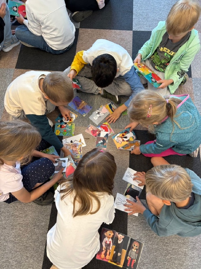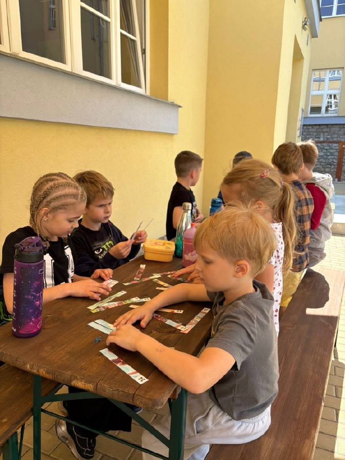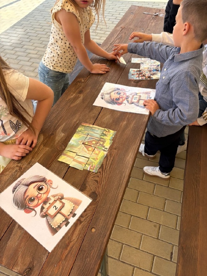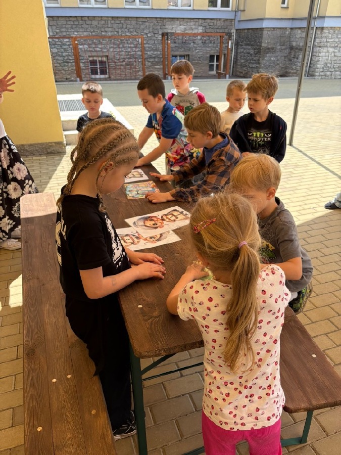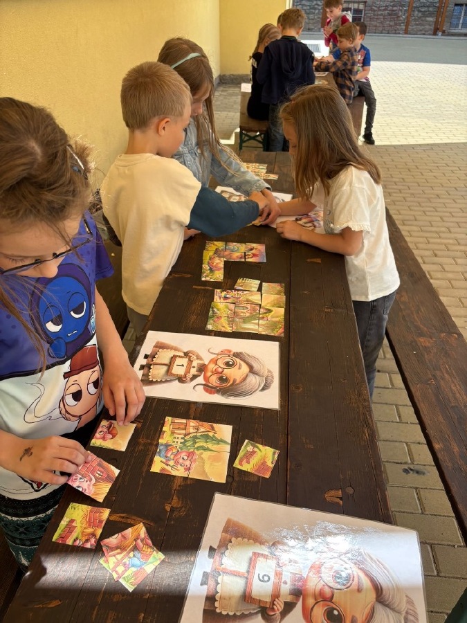 Pak na nás v přírodní učebně čekaly další aktivity k tématu: počítali jsme a následně skládali puzzle, hledali a přiřazovali bytosti z říše fantazie k názvům příběhů, hledali dvojice patřící k sobě pomocí chytrého pexesa. Den jsme si užili a těšíme se do 2.ročníku, tím nás budou provázet 4 známé postavičky z naší literatury.
