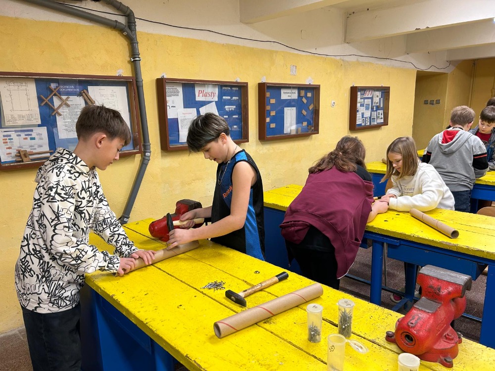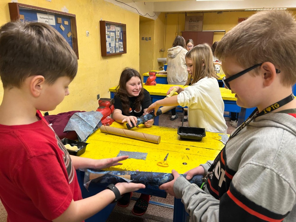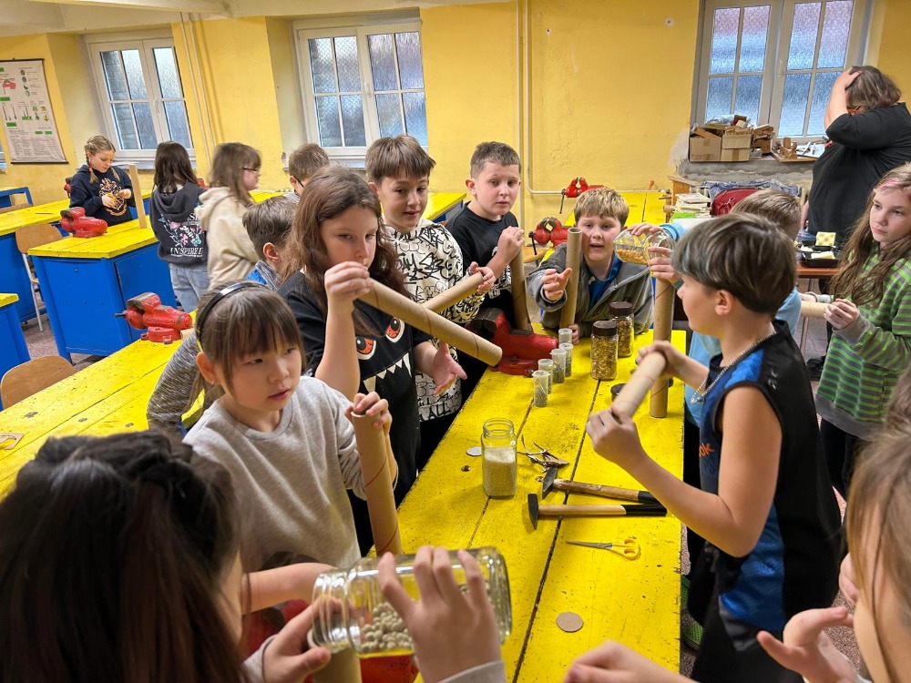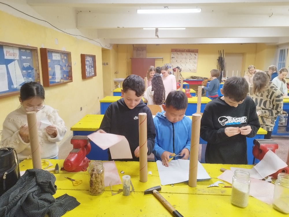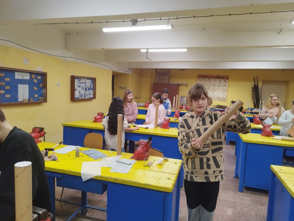 V rámci kreativní dílny si žáci 4. třídy vyzkoušeli výrobu dešťové hole, tradičního hudebního nástroje, který pocházel z kultur původních obyvatel jižní Ameriky. Tento nástroj napodobuje zvuk deště a je využíván při rituálech i relaxaci.