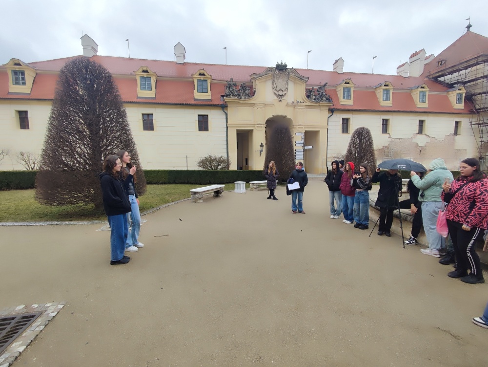 V rámci projektu UNESCO 30 vyrazila 8.B na dva dny do Lednicko Valtického areálu. Zde jsme navštívili zahrady Lednického zámku, díky úžasné a místo milující průvodkyni zažili krásnou prohlídku romantického zámku. Krátce zavítali do Rakouska, večer si prošli nočními Valticemi, v nichž druhý den navštívili zámek spolu s jeho nádhernou kaplí a původně zrekonstruovaným barokním divadlem. Cestou zpět neopomněli se ještě zastavit aspoň na dvou místech úžasného areálu, když navštívili Dianin chrám a Chrám Tří grácií. Během toho tvořili filmovou přípravu pro závěrečnou část školního projektu. To vše zvládli i přesto, že na rozdíl od zbytku republiky, oni měli to štěstí, že jim celé dva dny strávené v malebném koutů jižní Moravy víceméně propršely.