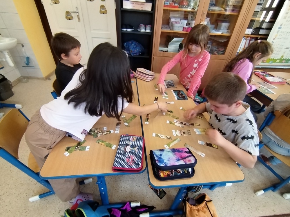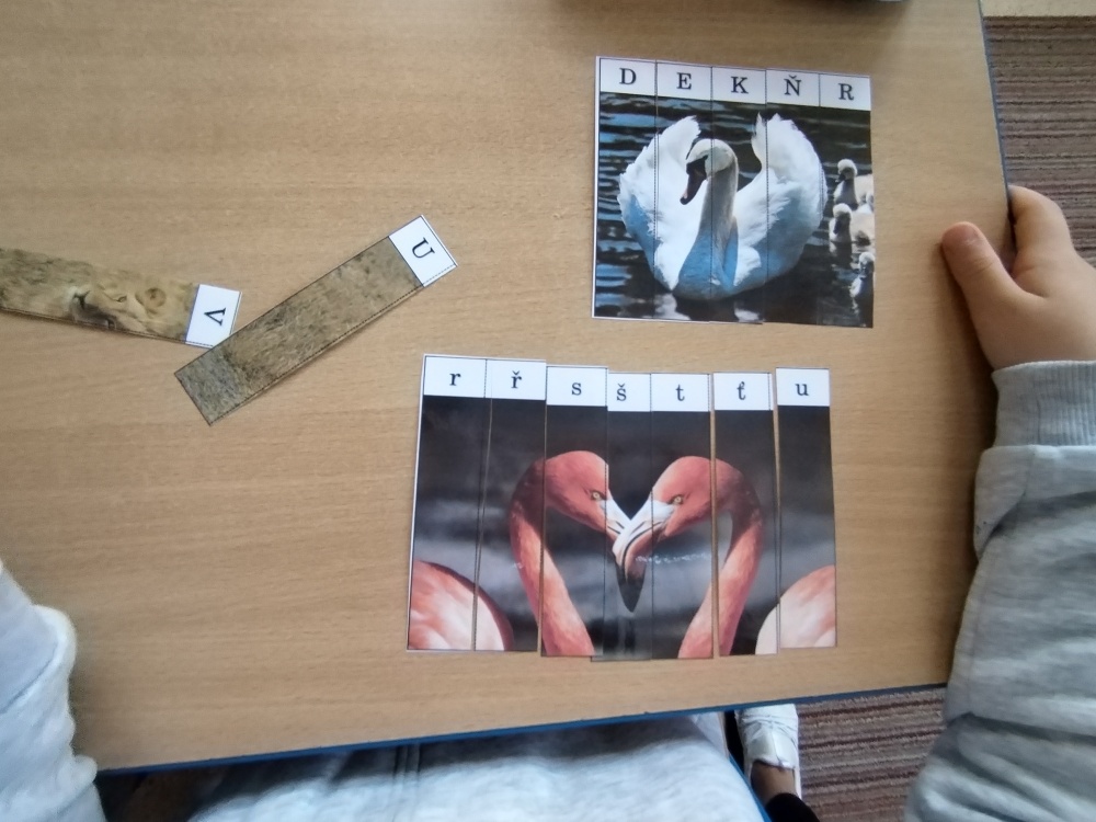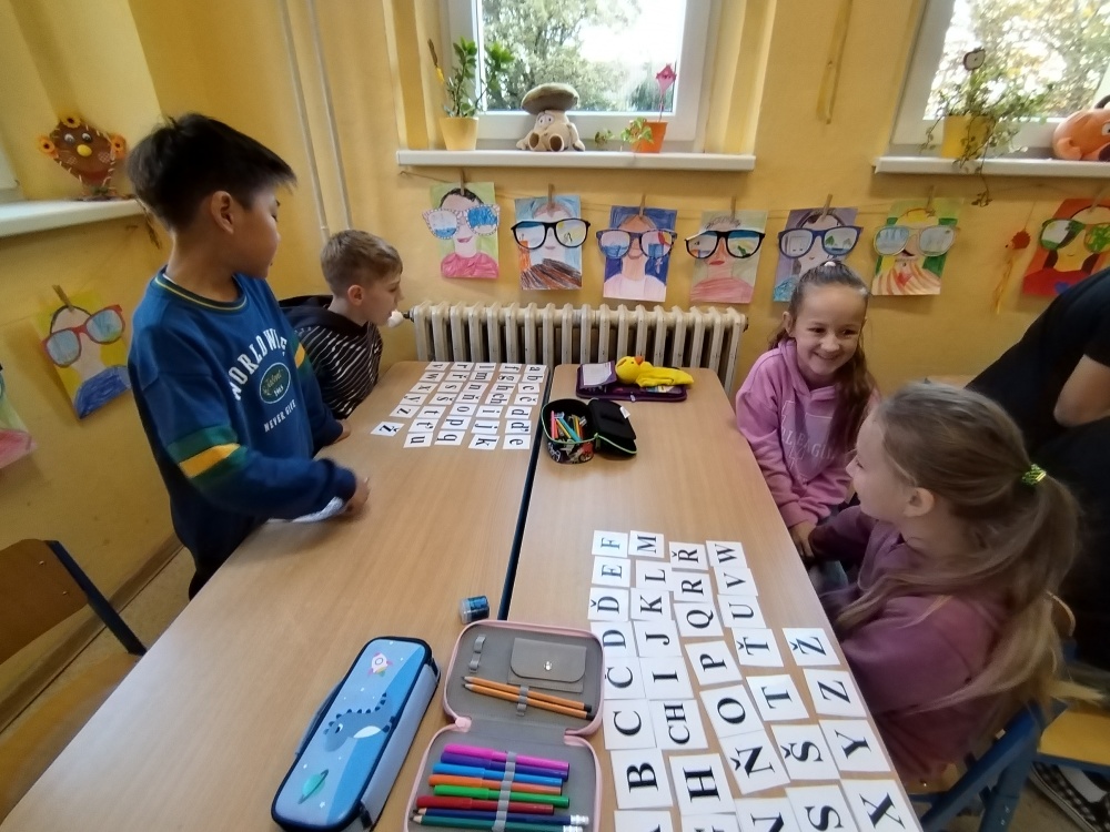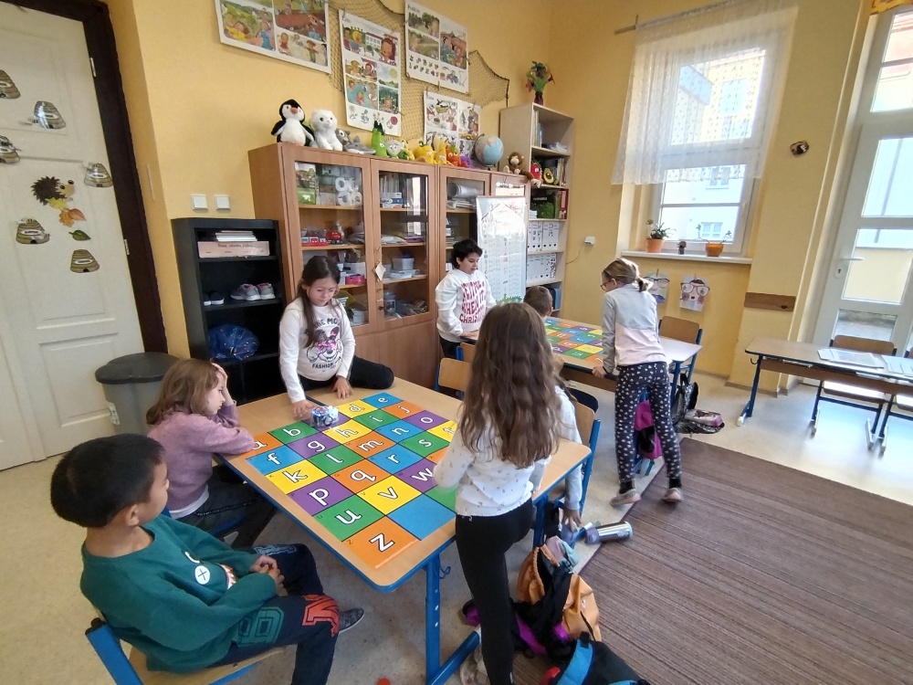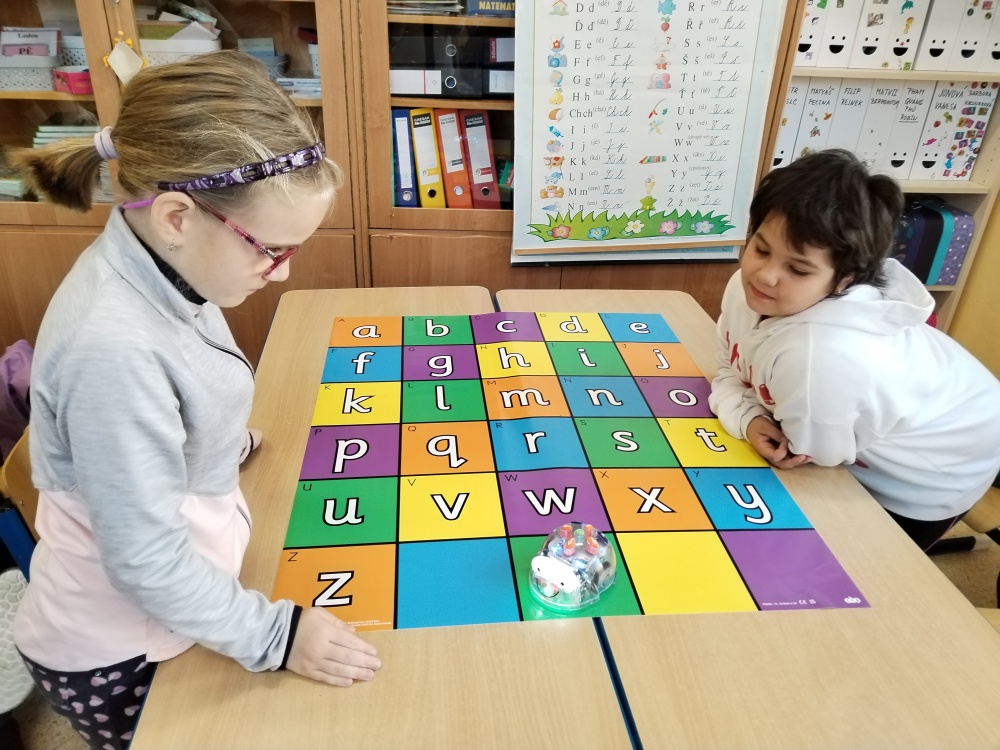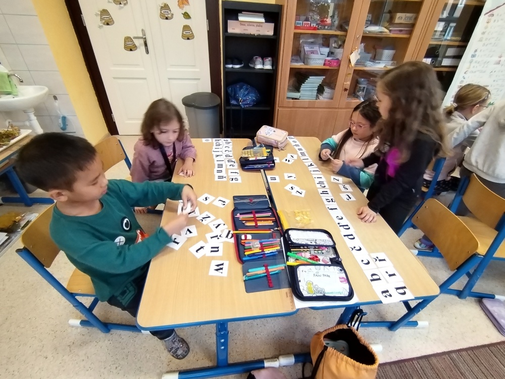 Ve čtvrtek 24. 10. proběhl v naší třídě projektový den, který byl zaměřený na abecedu. Po celou dobu projektové výuky jsme pracovali nejen ve dvojicích, ale i ve skupinách. Žáci řadili písmena ve správném pořadí a také jsme doplňovali chybějící písmena, která jsme zkoušeli psát ve tvarech tiskacích i psacích. Také jsme skládali rozstříhané obrázky zvířat. Pomocí kartiček a obrázků jsme si procvičili řadit podle abecedy i celá slova. Dále jsme si zábavnou formou trénovali logické myšlení a prostorovou orientaci a naprogramovali si směr a trasu do určitého cíle pomocí Blue – Botů. Nakonec jsme výtvarně ztvárnili všechna písmena abecedy. Projektový den jsme si velice užili a už se těšíme na další.
