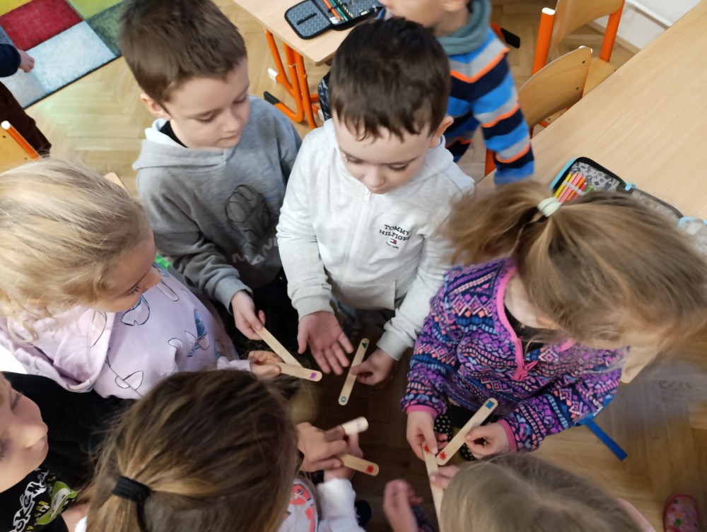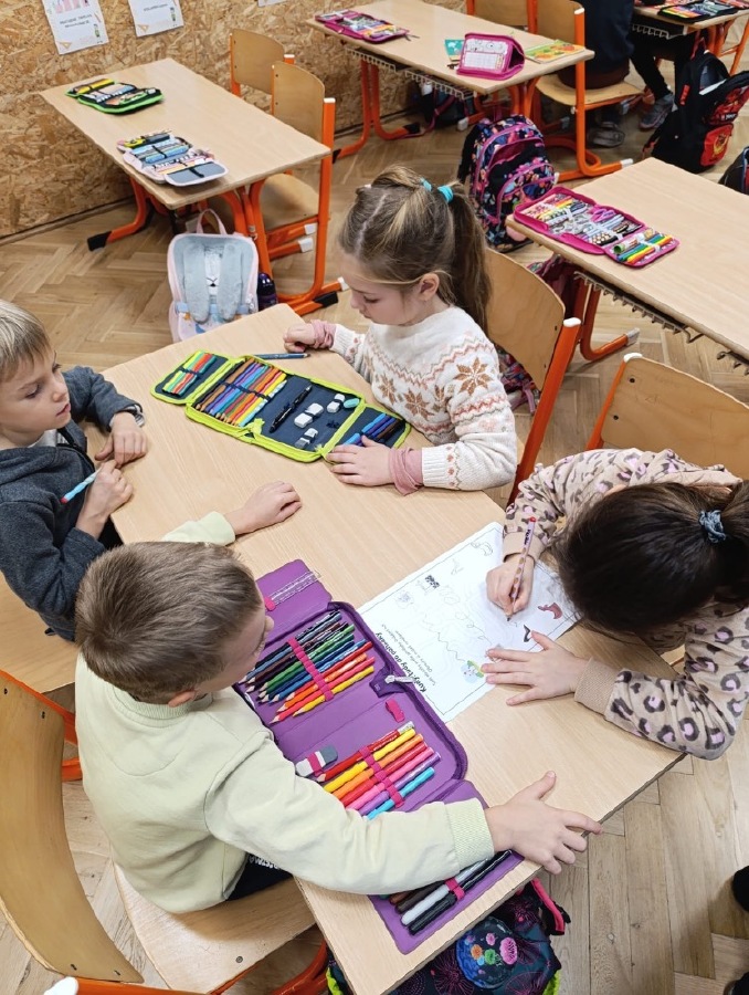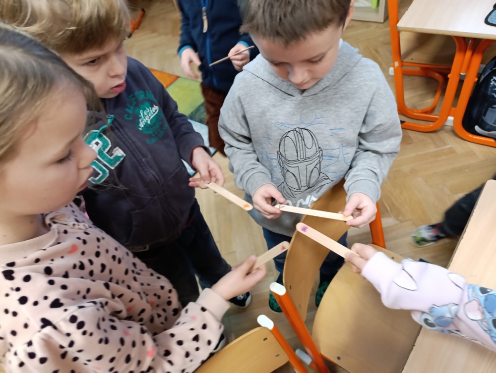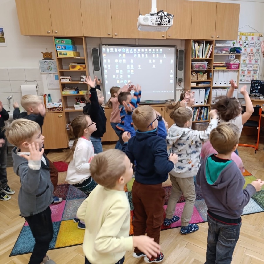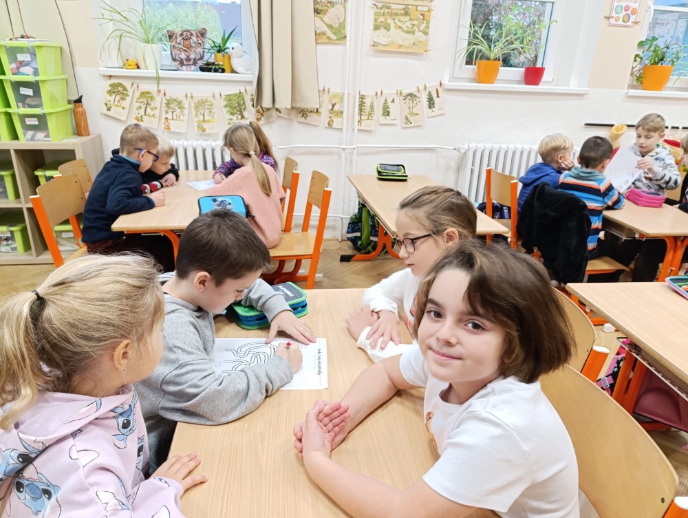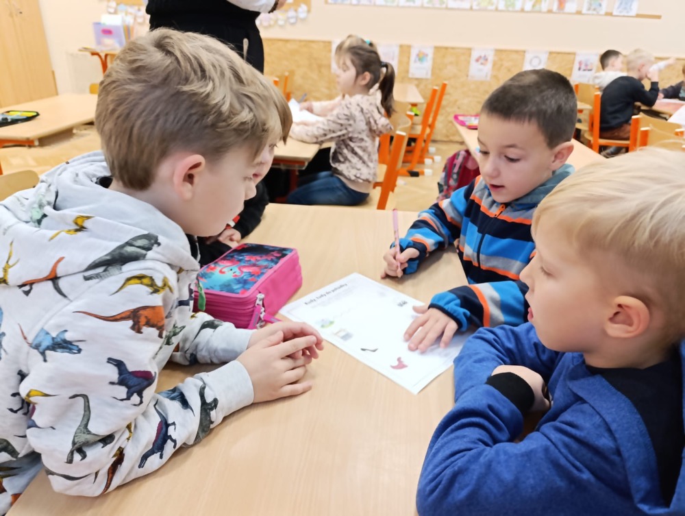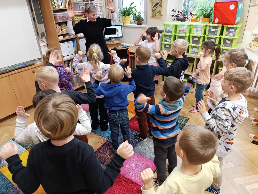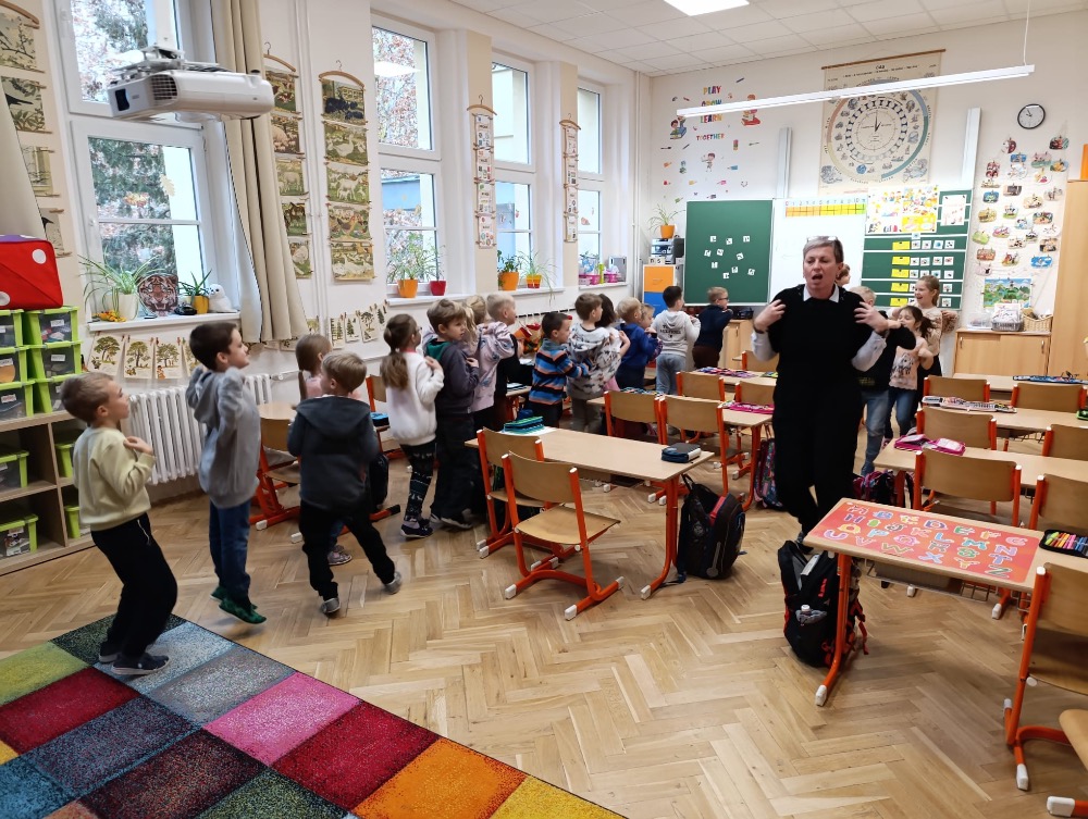 Ráno jsme odstartovali slepičí rozcvičkou. Děti se pak rozdělily do skupin. V nich společně řešily úkoly. Hledaly cestu z bludiště, vytleskávaly slova a určovaly počet slabik, určovaly, co do pohádky nepatří, hledaly rozdíly mezi obrázky, atd. V případě první pohádky nesměl chybět Ptačí tanec, který se velmi líbil. Druhý příběh si děti po jeho vyslechnutí ještě zahrály s pomocí maňásků. V závěru dnešního bloku jsme z pohádek vyvodili ponaučení, že si máme navzájem pomáhat, dělit se, neodbývat svoji práci a dbát rad rodičů.
