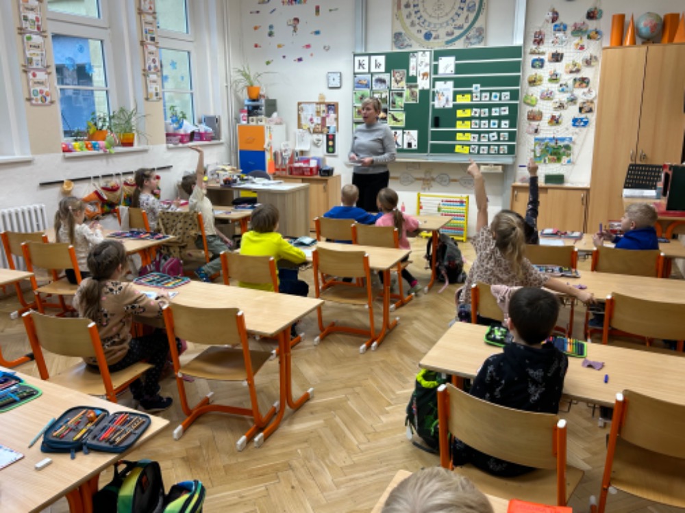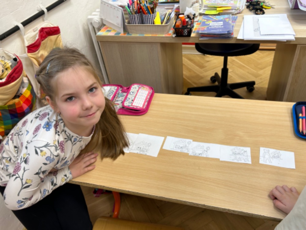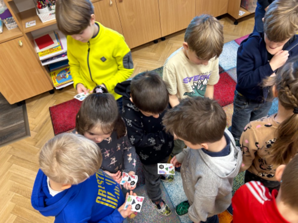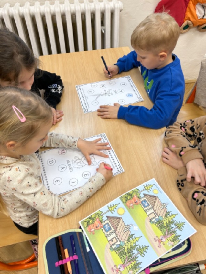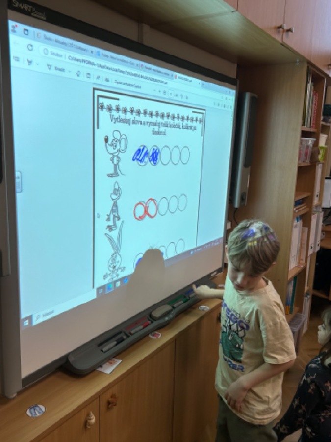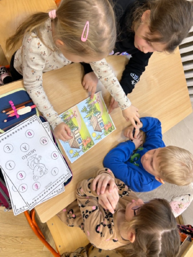 Společně jsme si děj přečetli. Děti pak odpovídaly na otázky různými styly. Procvičili jsme slabikování slov, hledali rozdíly mezi obrázky, skládali děj pomocí obrázků, pohádku zdramatizovali.