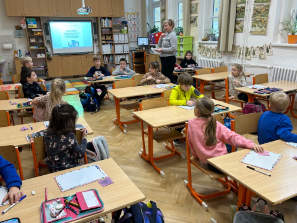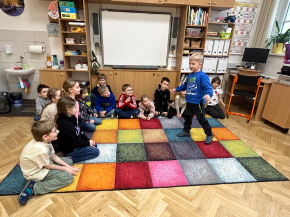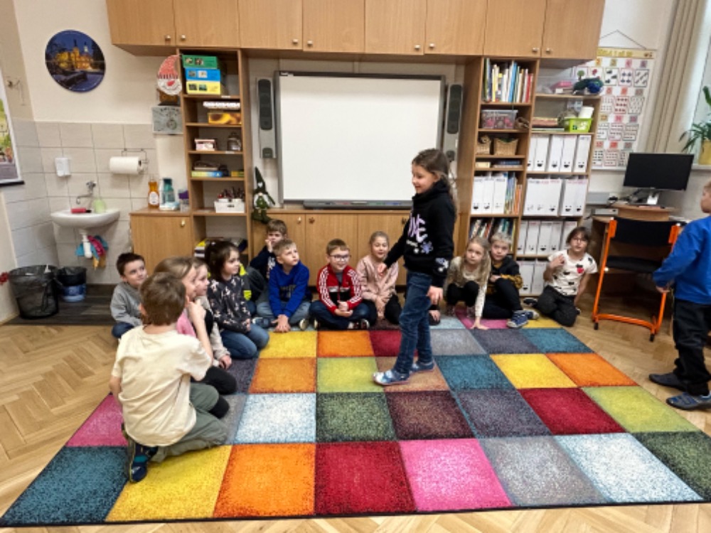 Děti z 1.B v úterý pokračovaly v cestě pohádkovou říší. Po prosincové pohádce O koblížkovi nás čekal příběh Bouda, budka.