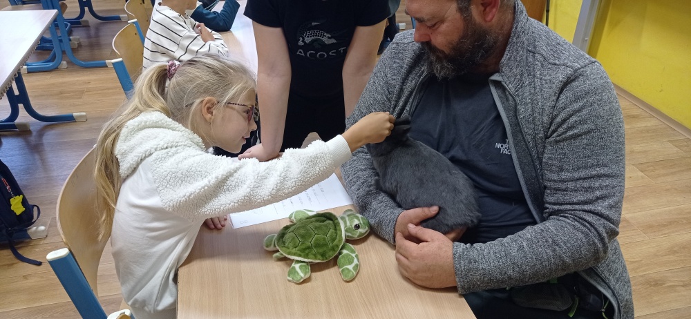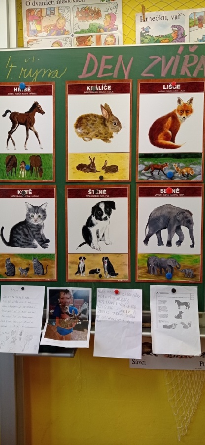 V naší třídě jsme tento den oslavili různými činnostmi. Děti přinesly živá zvířátka, ale jen taková, která zvládnou pobyt ve škole, zbytek dětí si donesl plyšové hračky nebo fotografii svého domácího mazlíčka. Každý své zvířátko představil, pohovořil o jeho životě, jeho potřebách a jak se o zvířátko stará. Vyrobili jsme si obrázek labutě na rybníku, skládali jsme z papíru. Ještě si vyrobíme masku domácího mazlíčka, jeho zdravotní kartu a krabičku na léky. Ve skupinách jsme vymýšleli názvy zvířátek podle abecedy. Také jsme si zazpívali písničky, skládali puzzle, řadili zvířátka do skupin podle místa jejich pobytu. Ani na pohádku jsme nezapomněli. Prostě celé dopoledne plné her, zábavy a poučných informací.