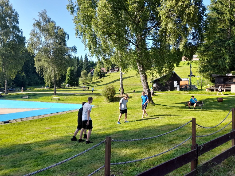 Hurá a máme tu také slunečné počasí! Vychutnali jsme si ho plnými doušky. Dopoledne procházkou na sjezdovku, kterou žáci velmi dobře pamatují ze svého lyžařského pobytu. Pozdravili známého kamaráda pana Aleše z hotelu Sun Ski a po vydatném obědě se všichni vydali na exkurzi do skláren. Podvečer někteří odpočívali, jiní hráli fotbal a volejbal. Těšíme se na středu a celodenní procházku k pramenům Labe. Krkonošům zdar!
