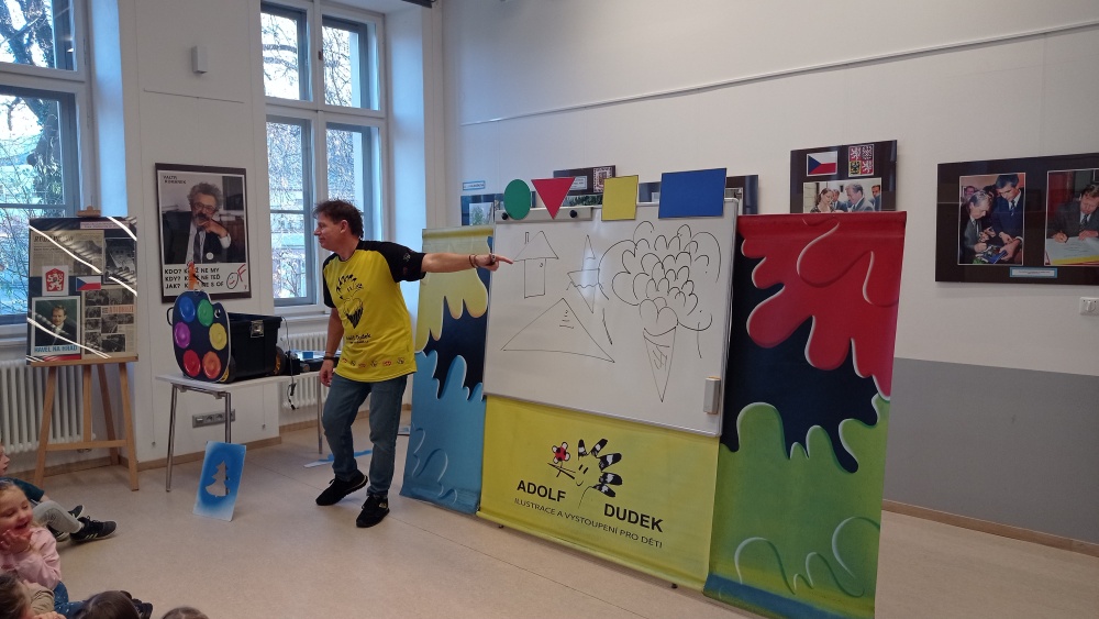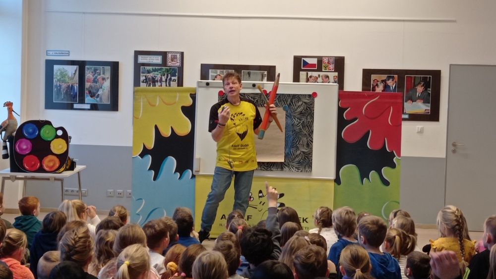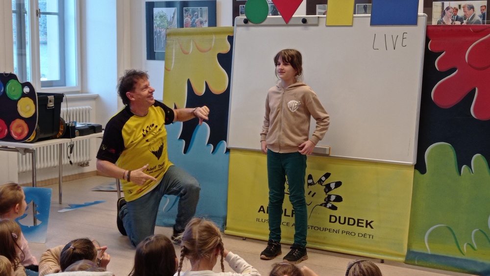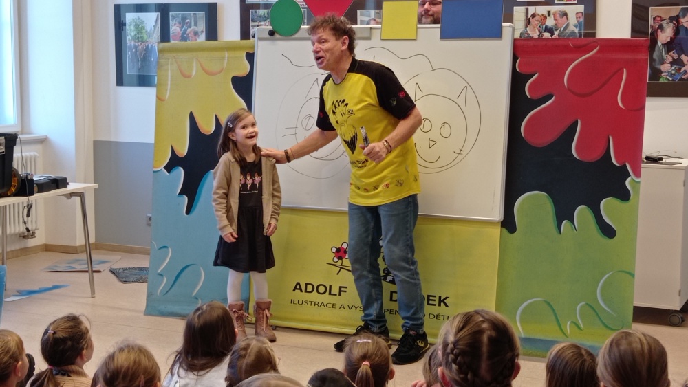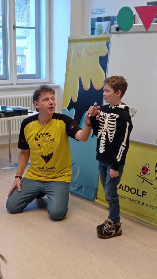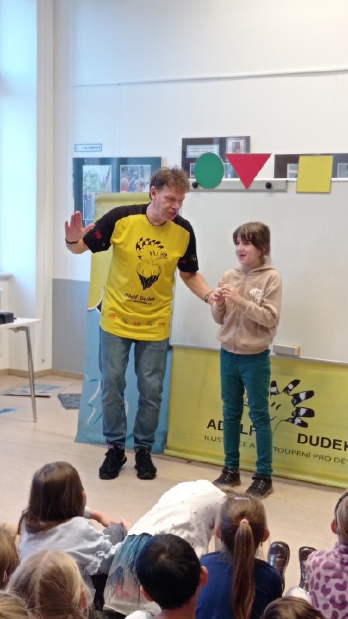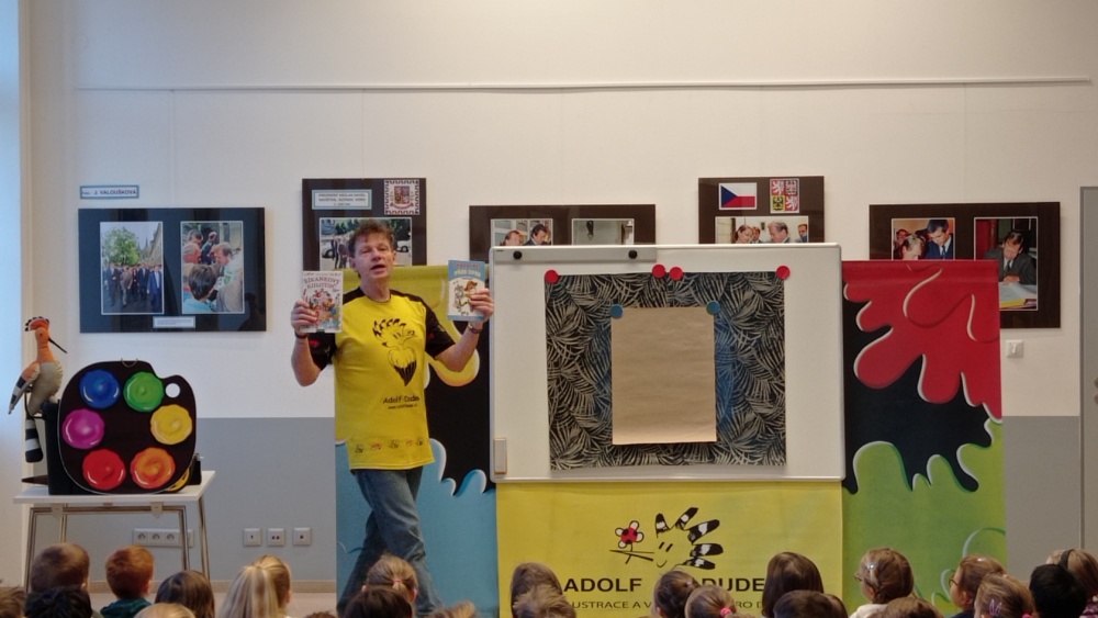 Žáci 2. a 3. ročníků navštívili místní knihovnu, kde se seznámili s ilustrátorem dětských knížek, Adolfem Dudkem. Ten je provedl poutavým a vtipným vystoupením svojí tvorbou.