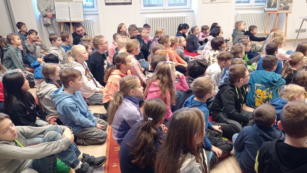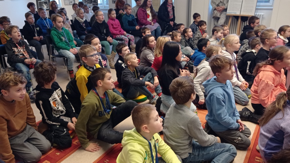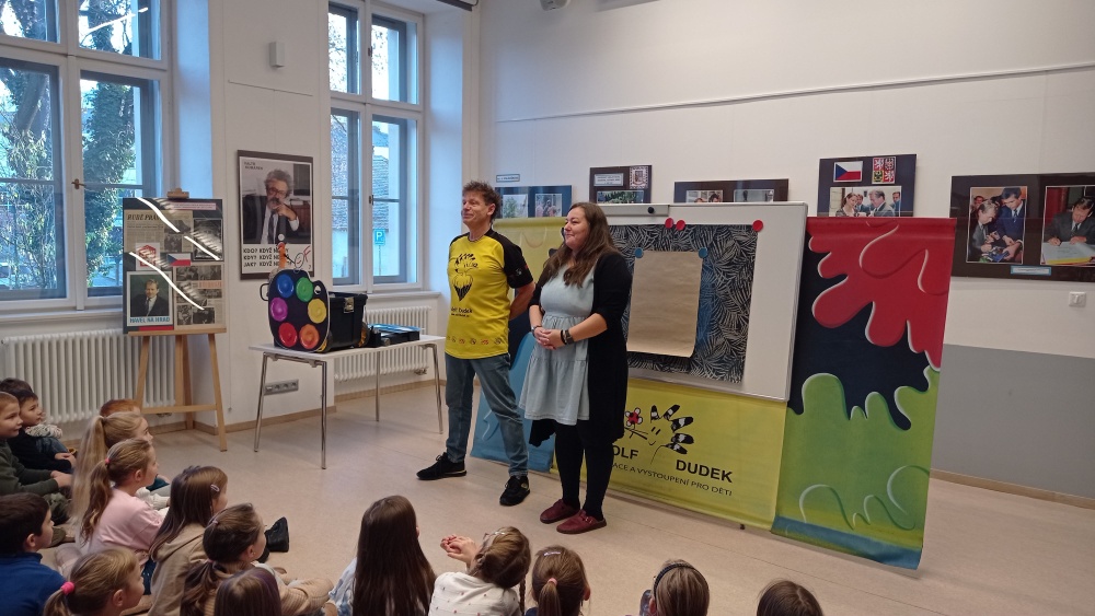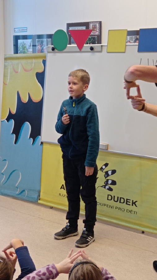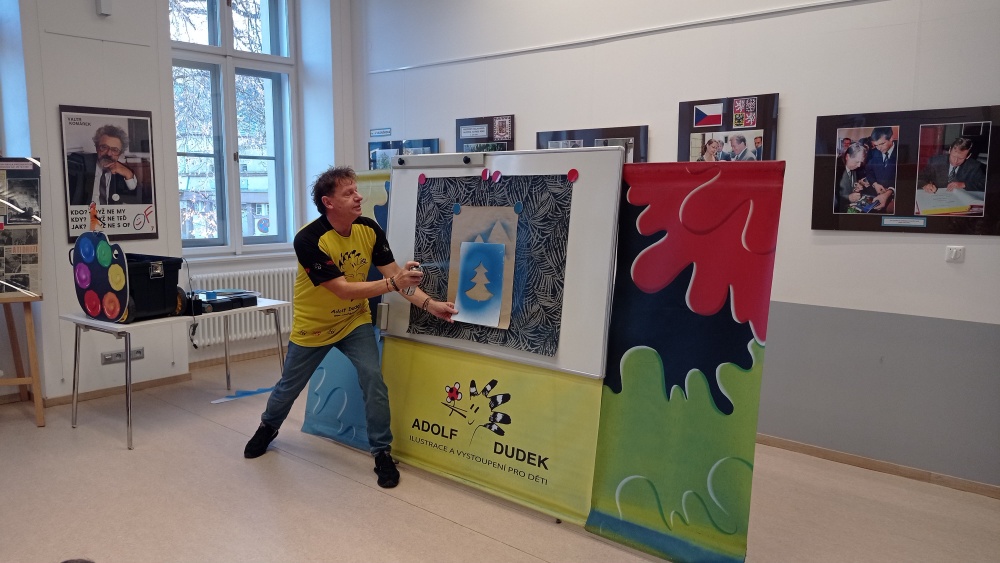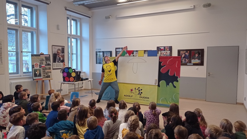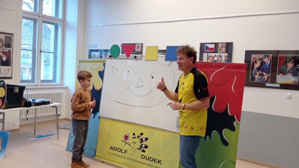 Žáci 2. a 3. ročníků navštívili místní knihovnu, kde se seznámili s ilustrátorem dětských knížek, Adolfem Dudkem. Ten je provedl poutavým a vtipným vystoupením svojí tvorbou.