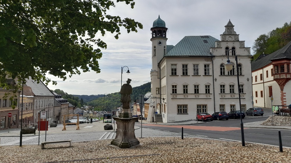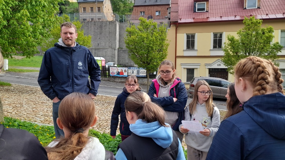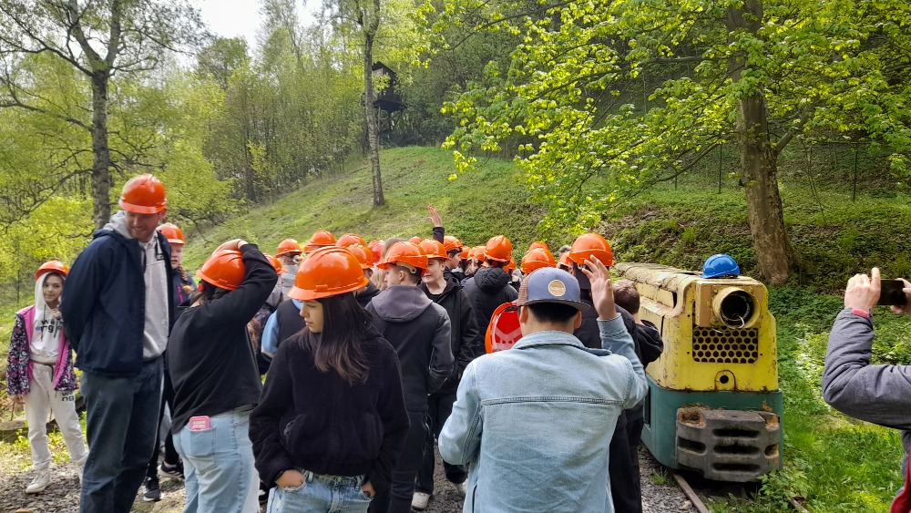 První zastávkou byla štola v Jáchymově, po které nás provedl pan průvodce. Dozvěděli jsme se mnoho nového o těžbě stříbra, uranu a o nelehkém životě horníků. Nechyběly ani informace o temných kapitolách historie spojených s pracovním nasazením politických vězňů v uranových dolech.