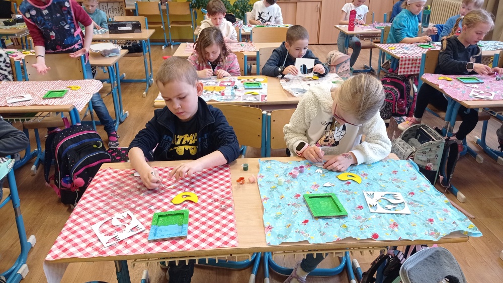 Obrázky se žákům velice povedli a s radostí si je všichni odnesli domů . Už se moc těšíme na další vyrábění.