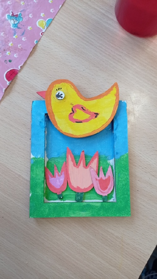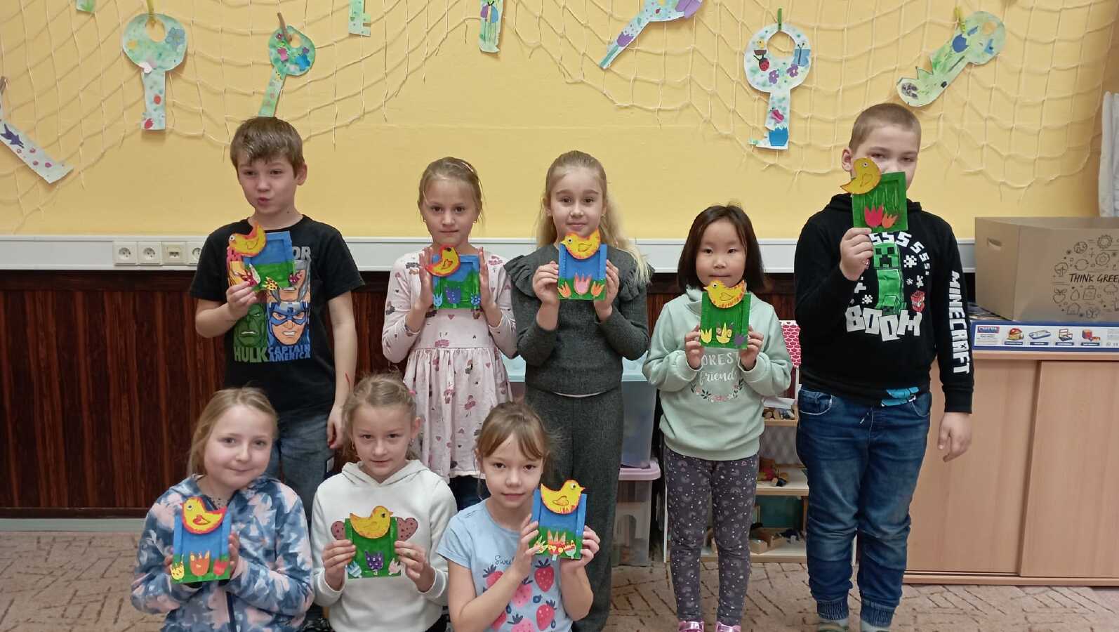 Žáci druhých ročníků přivítali jaro výrobou originální jarní dekorace - obrázku s motivem ptáčka.