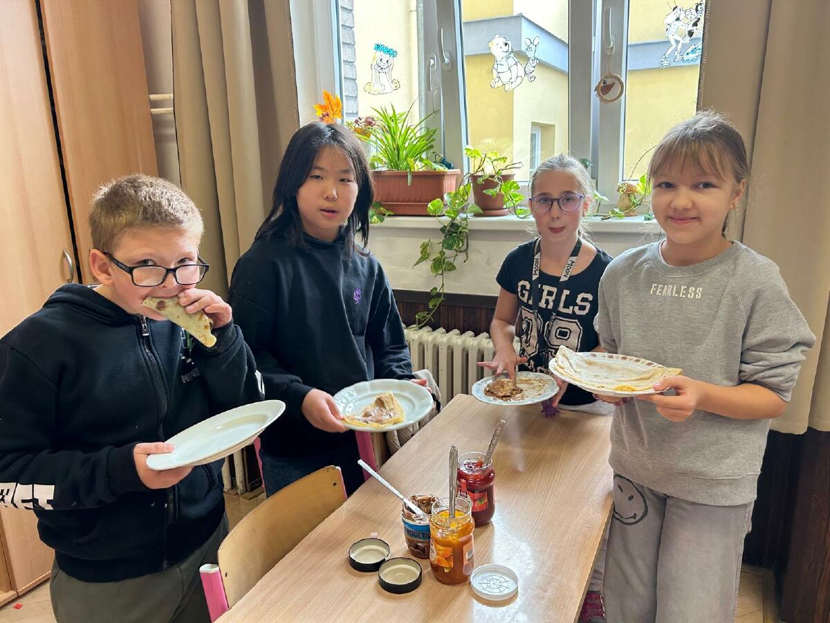 V naší třídě 4.B jsme si nedávno uspořádali Palačinkový den, který se stal nejen skvělou příležitostí pro přípravu chutného jídla, ale také zábavným a poučným zážitkem. Cílem bylo nejen usmažit palačinky, ale také rozvíjet jazykové dovednosti našich dětí.