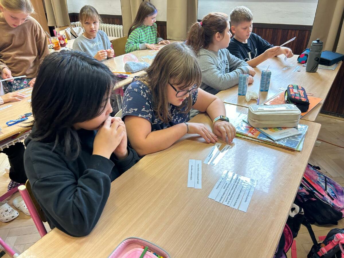 Další fází našeho Palačinkového dne bylo hledání pravopisných chyb v našem textu. Děti se s nadšením pustily do úkolu a bylo skvělé vidět, jak se navzájem podporovaly při hledání a opravování chyb. Tento krok nám umožnil posílit jazykové dovednosti a ukázat, jak důležité je věnovat pozornost detailům. V závěru dne si každý vychutnal svou palačinku.