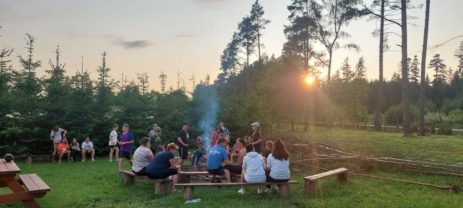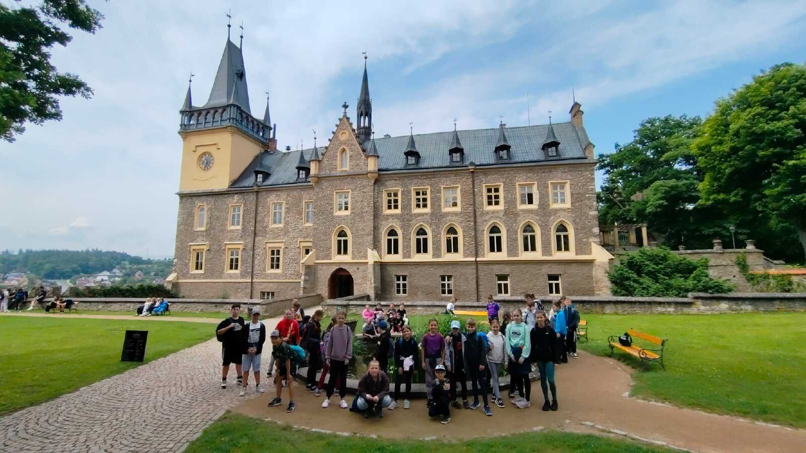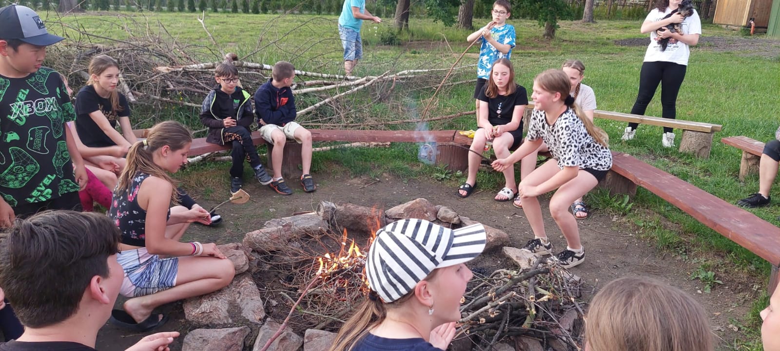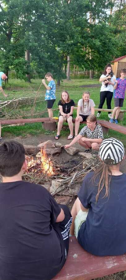 Dnes jsme vlakem vyrazili do Zruče nad Sázavou. Navštívili jsme zámek se zámeckou zahradou, pak jsme vystoupali na rozhlednu Babka s krásným výhledem. Děti si užily kuličkovou dráhu na hřišti a pak jsme se osvěžili koupáním v rybníce. Po večeři jsme si poseděli u ohně a zakončili den hraním s míčem v tělocvičně. Byl to skvělý den plný zábavy a odpočinku!