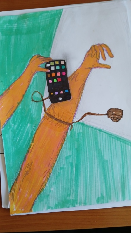 O hodinách výtvarné výchovy jsme se zabývali tématem závislosti na telefonu. Závislost na chytrých telefonech se nevyhýbá bohužel ani dětem. Mluví se o ní také jako o NOMOFOBII. Úzkost při zabavení telefonu se projevuje častěji, než bychom si přáli.