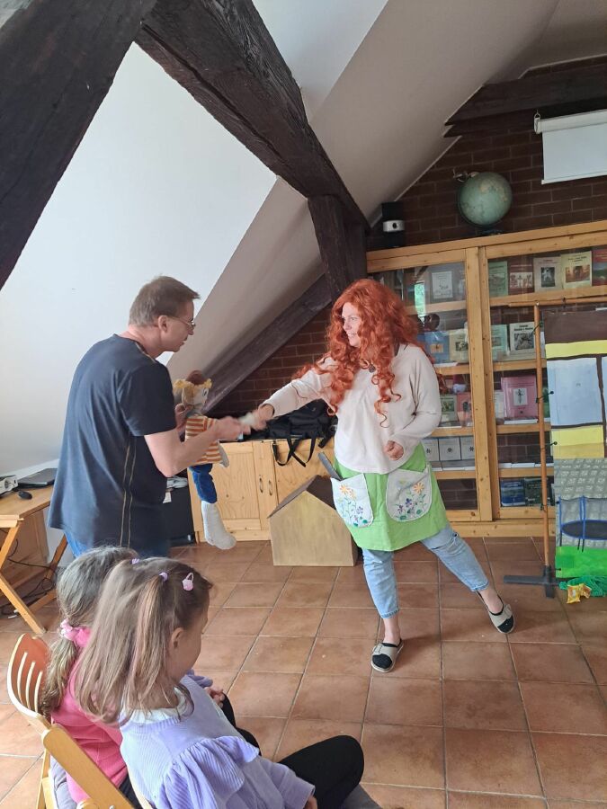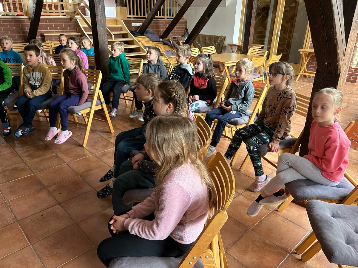 Náš pobyt ve vlašimském Ekocentrum jsme zahájili úvodním divadélkem a reflexivním rozhovorem, obojí na téma Život v zahradě. Poté na nás čekala prohlídka parazoo. Po večeři jsme se vydováděli na hřišti a v zámeckém parku. Tady jsme dokonce zvládli i jednu z okružních cest. Máme se báječně a těšíme se na další zážitky.