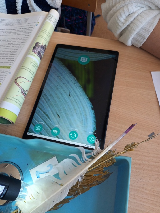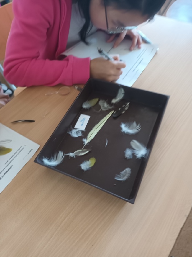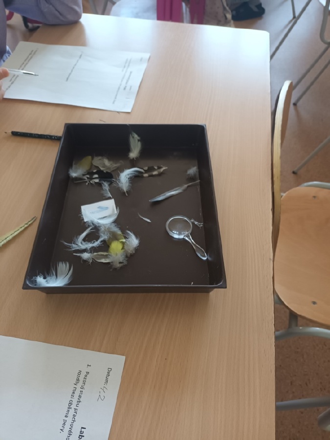 V rámci laboratorní práce na téma ptáci žáci 7.ročníků objevovali tajemství stavby ptačího peří a vejce. Pomocí mikroskopů zkoumali strukturu ptačího peří a pomocí lupy skořápku vejce i jeho vnitřní stavbu. Žáci se také učili poznávat různé druhy ptáků podle jejich charakteristických znaků. Výsledky pozorování a určování si zaznamenávali do svých protokolů a vzájemně ověřovali jejich správnost s pomocí literatury a dostupných zdrojů.