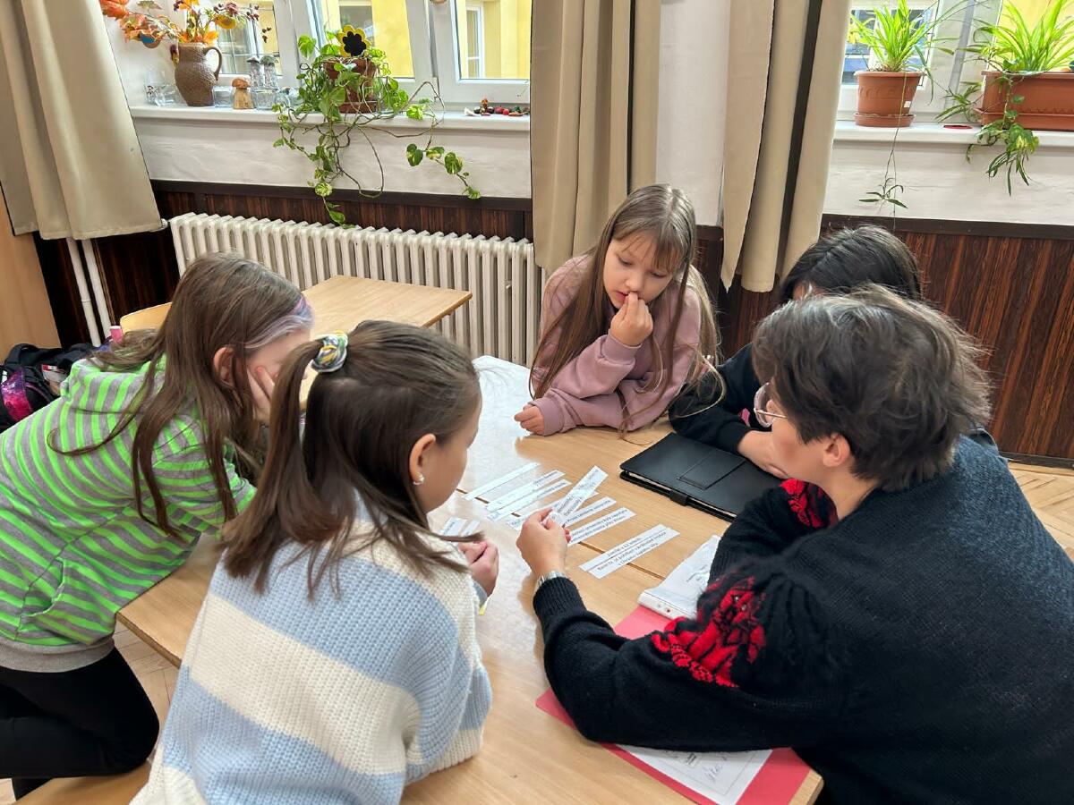 V další části programu jsme se zaměřili na vyhledávání informací v knihách. Děti se naučily, jak efektivně najít potřebné informace o Karlu IV. a jeho době. Každá skupina také vyluštila tajenku a složila domino.