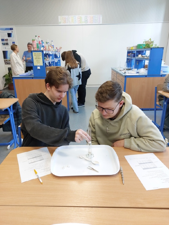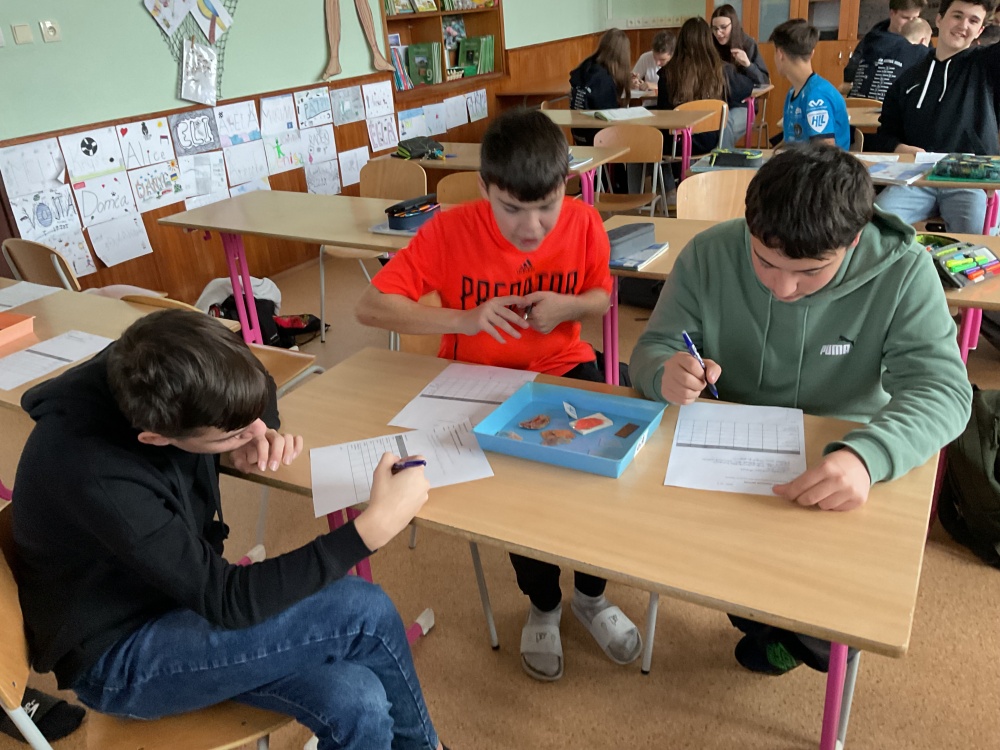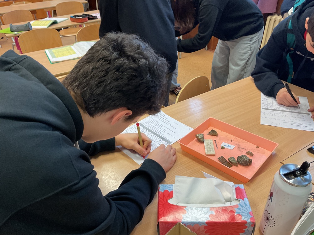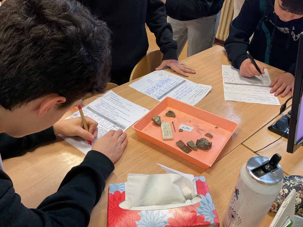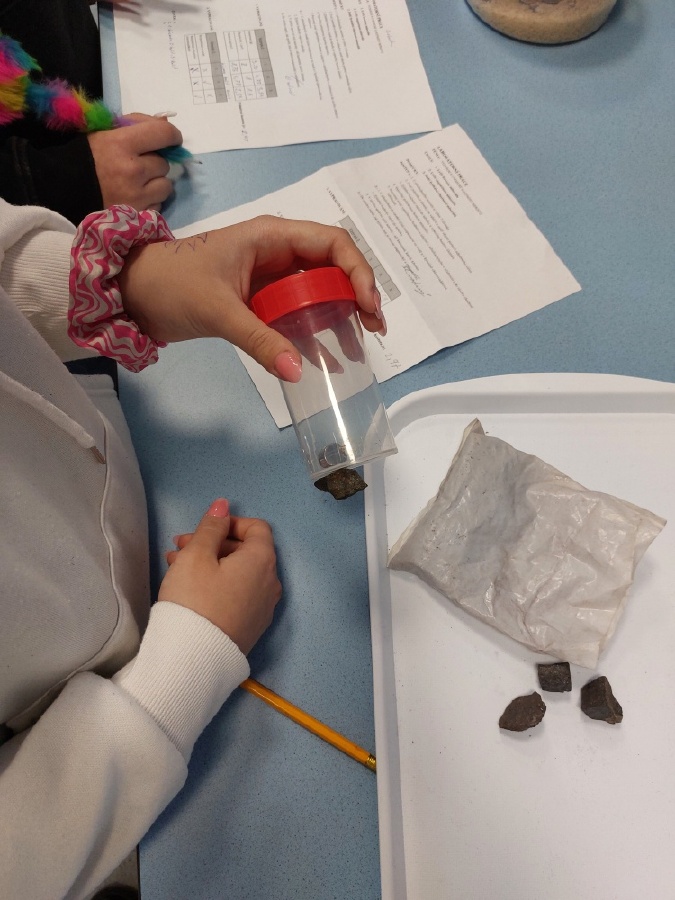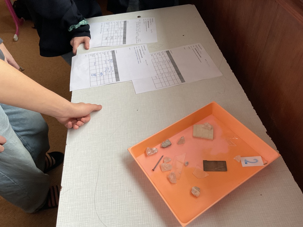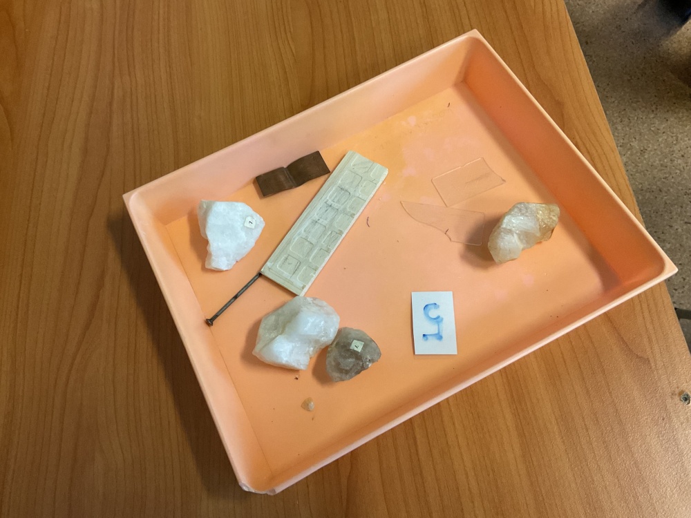 Během posledních dvou laboratorních prací se žáci 9.B věnovali zkoumání fyzikálních a chemických vlastností nerostů. Využívali nejen znalosti geologie, která je náplní přírodopisu 9.ročníku, ale také si zopakovali některá témata z fyziky, matematiky a chemie. Vyzkoušeli si prakticky určení optických vlastností nerostů a stanovení tvrdosti minerálu pomoci Mohsovy stupnice. V rámci science dvouhodiny si zopakovali měření hustoty těles a její výpočet, elektrickou vodivost a magnetismus látek. V chemické části se věnovali rozpustnosti minerálů ve vodě a v kyselině.