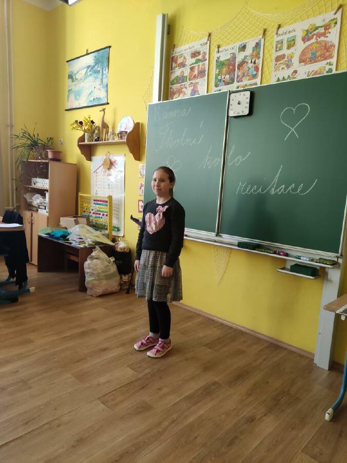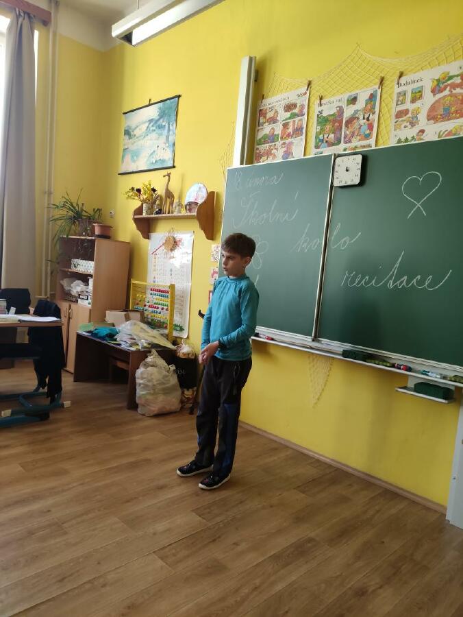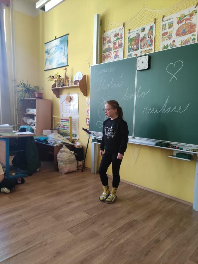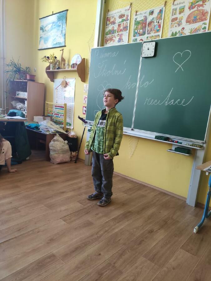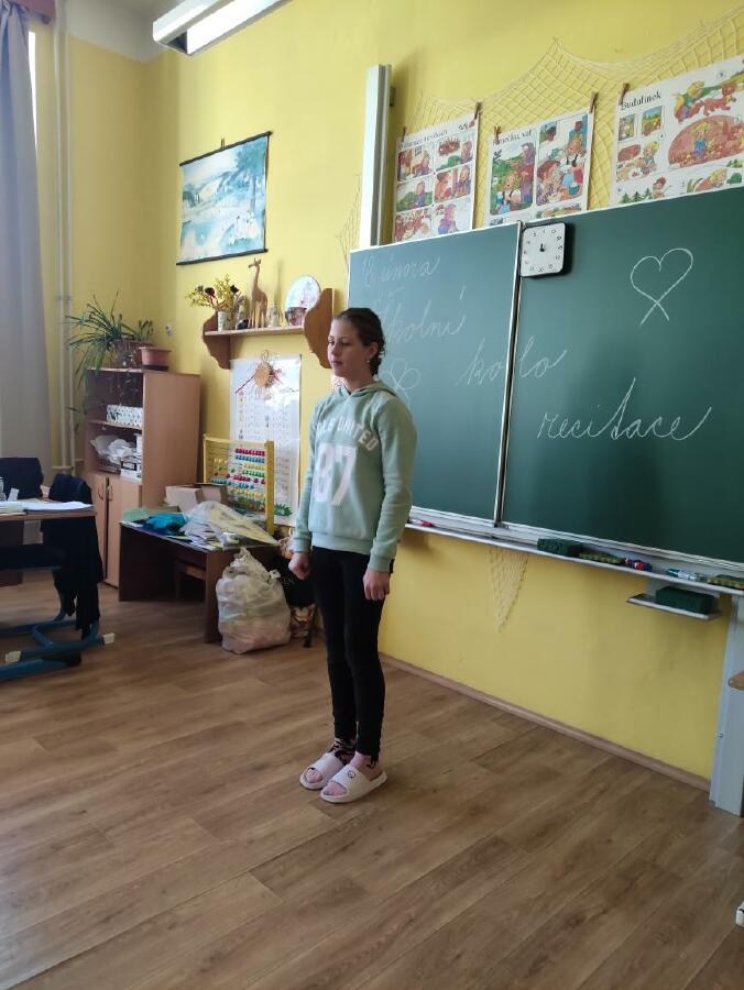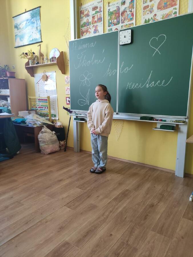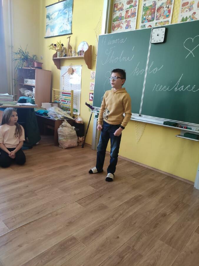 Dne 17. a 18. února se na naší škole konala recitační soutěž pro žáky prvního stupně. Soutěž si na zkoušku vyzkoušeli i naši prvňáčci. Měli moc pěkné básničky a bez ostychu se o ně s námi podělili. Moc se jim to povedlo.