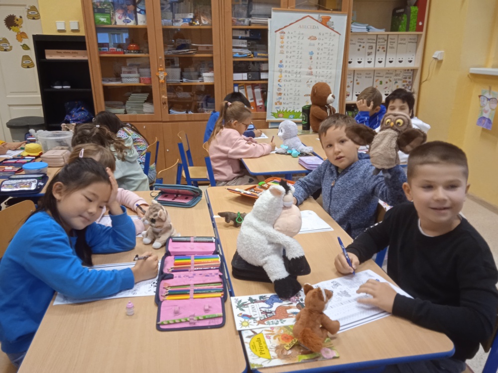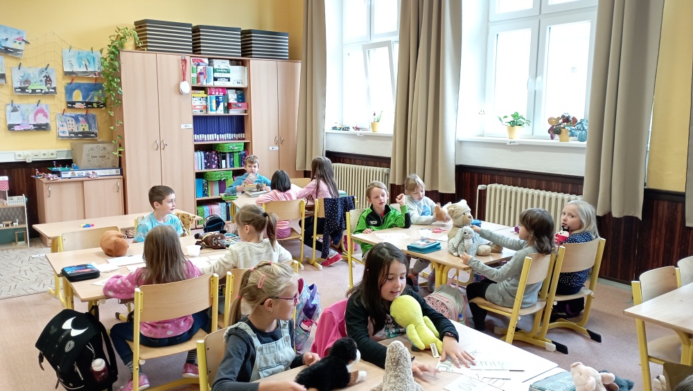 V pátek 4. října si druháčci připomněli Mezinárodní den zvířat projektovým dnem. Do školy si přinesli své oblíbené mazlíčky (živé, plyšové, v knihách i na fotkách) a společně se zamysleli nad tím, jak o zvířátka správně pečovat a jak se k nim ohleduplně chovat. V průběhu dopoledne pak plnili nejrůznější zvířecí úkoly, při kterých si zároveň procvičili své vědomosti a dovednosti. A celý den si náramně užili…