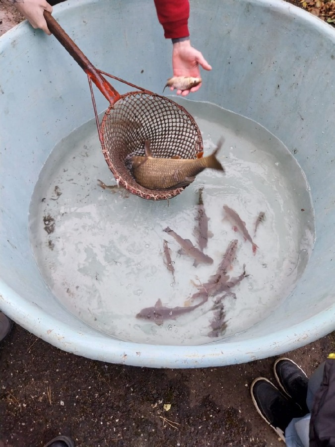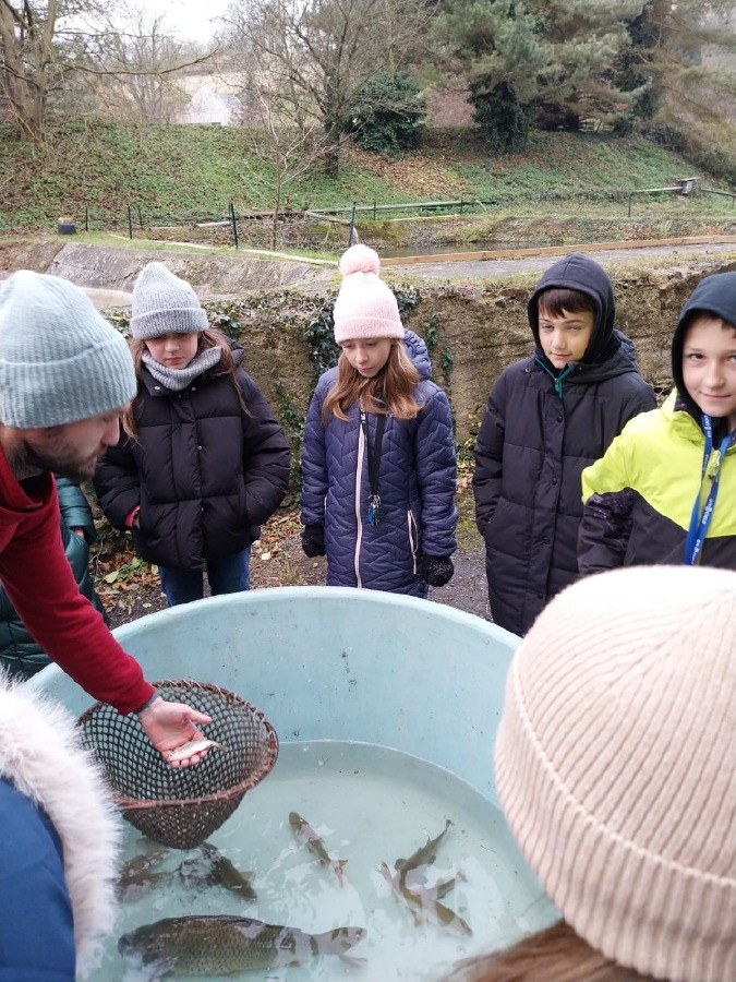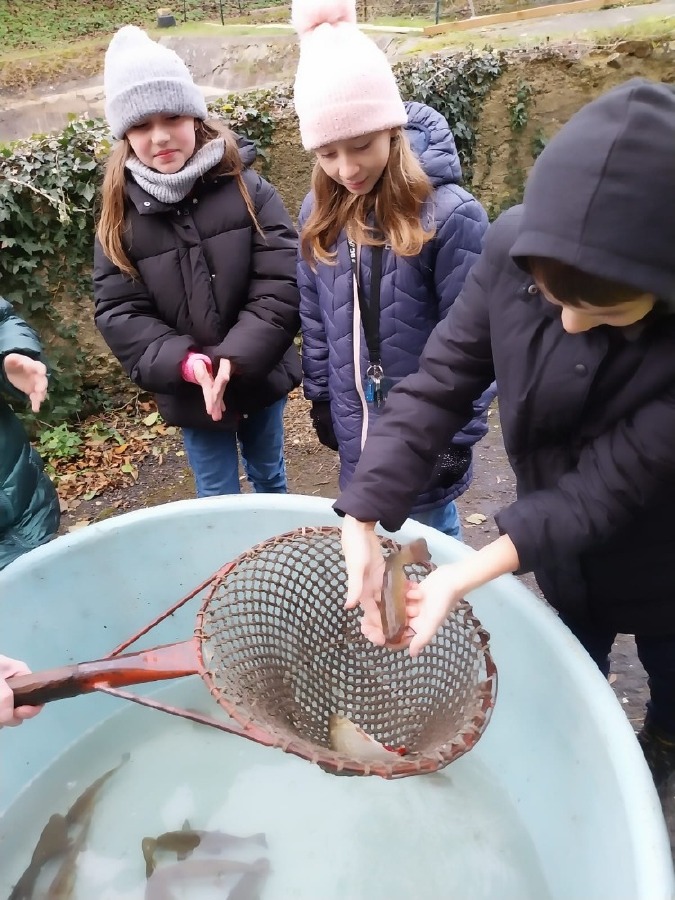 Dozvěděli se jakou klíčovou roli hrají v rybářství sádky. Jsou to speciálně upravené nádrže nebo bazény, kde se ryby chovají, krmí a připravují na prodej či výsadbu. Rybář jim ukázal různé náčiní používané při rybaření.
