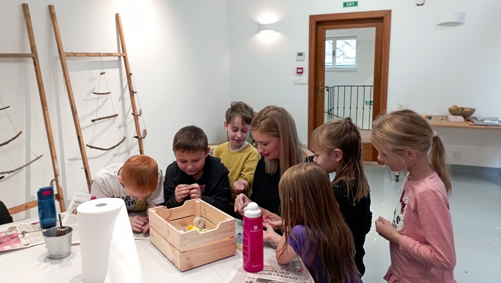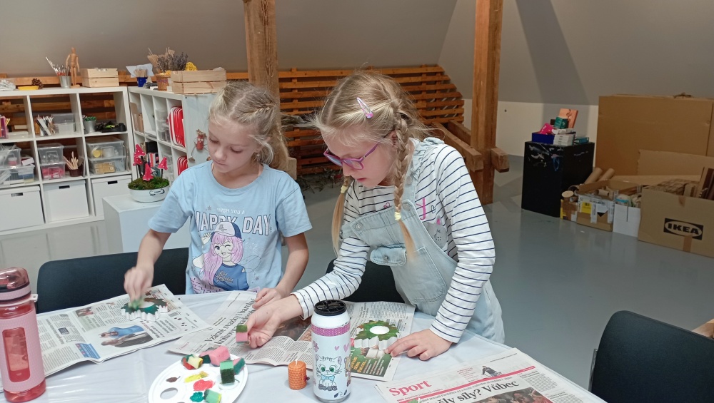Součástí programu byla výroba několika výrobků. Každý žák si vyrobil svíčku ze včelího vosku, svícen na čajovou svíčku a barevné světýlko.