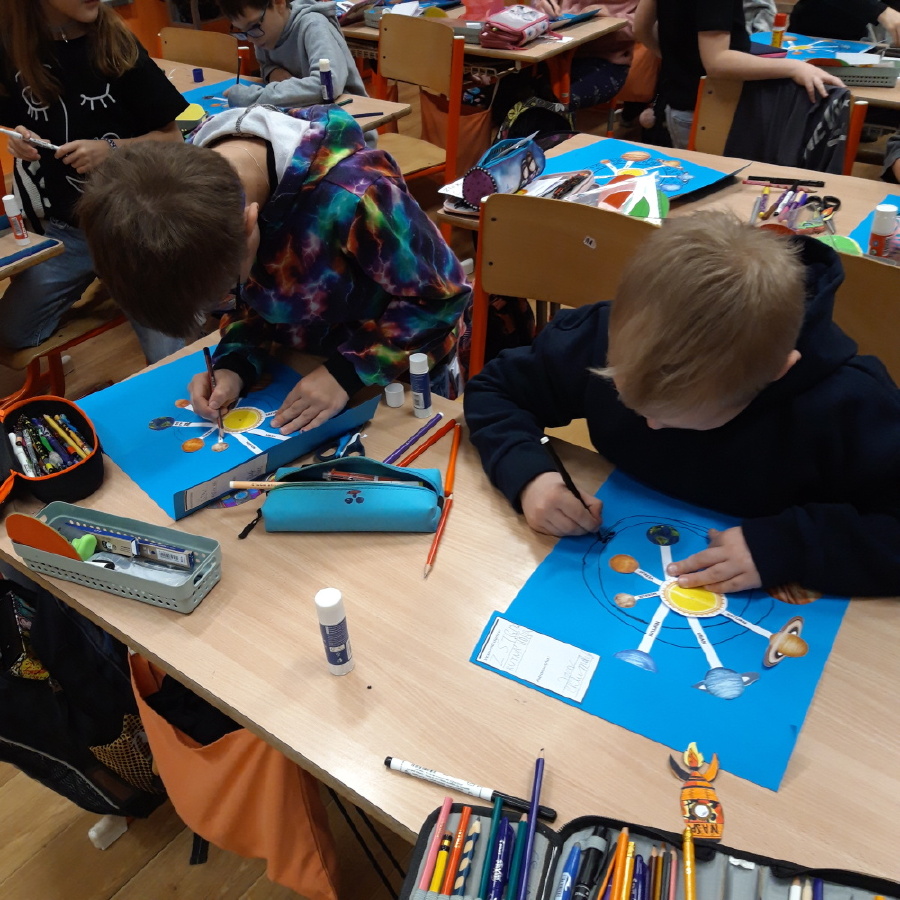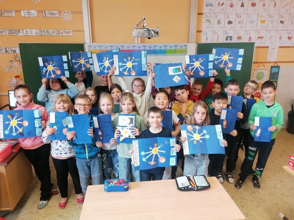 Velmi zajímavý projektový den pomohl žákům 3. ročníku zopakovat a upevnit probrané učivo o vesmíru. V průběhu dopoledne si děti postupně tvořily vesmírný lapbook. Při jeho výrobě si vyzkoušely základní knihařské postupy – rýsování, rýhování, výrobu klop a desek. V samém závěru proběhla týmová vědomostní soutěž Riskuj, která prověřila kvalitu získaných vědomostí. Žáci si projektový den pořádaný spolkem Pod horami užili a už se těší na další, který bude tentokrát zaměřený na včely.