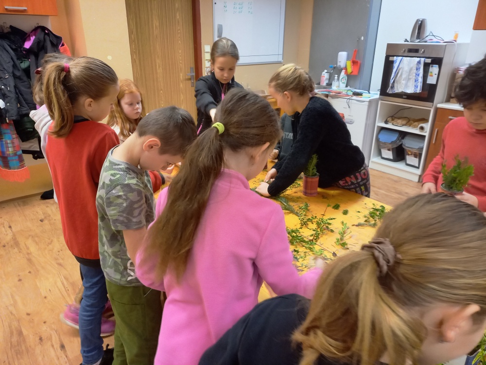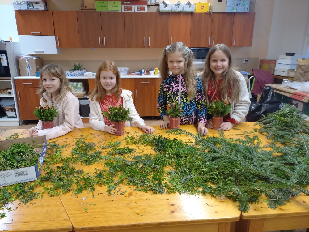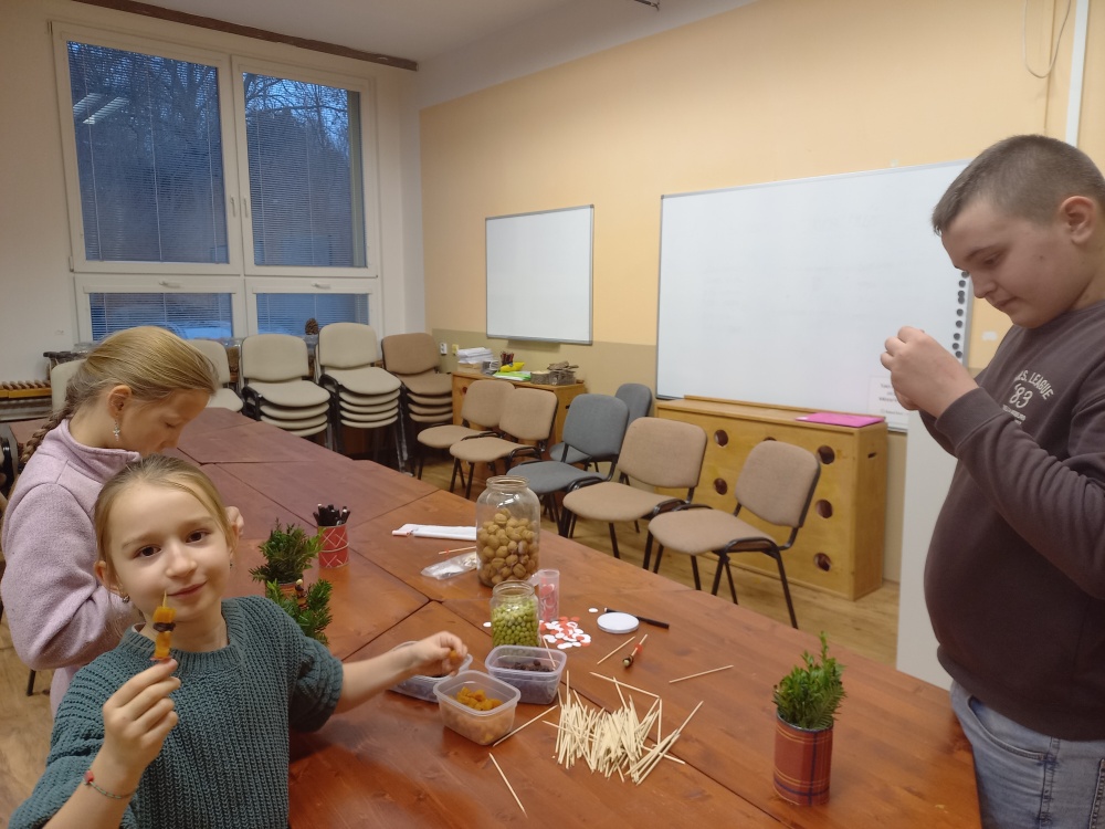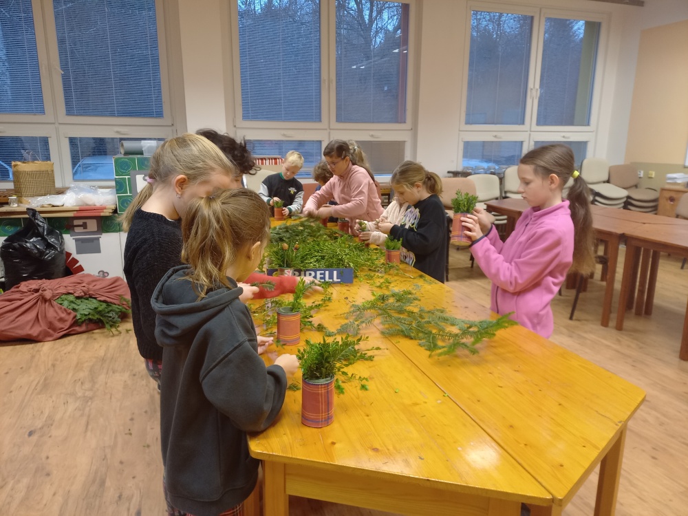 Vánoční dílnička byla zaměřena na tradiční předměty, které se po staletí vyráběly v adventním čase. Děti se vrátily do dob, kdy se na výzdobu i hračky využily přírodní materiály. Vyrobily si tradiční vánoční vrkoč.
