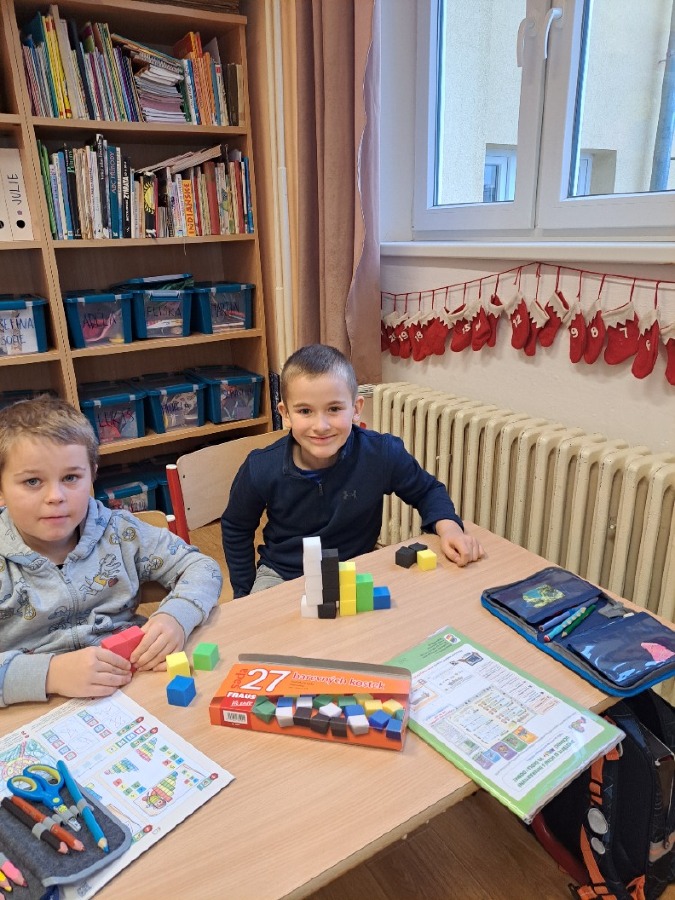 Poslední dva dny před vánočními prázdninami jsme vyplnili speciálními vánočními aktivitami - stavěli jsme z kostek podle návodu, luštili tajná slova, programovali Blue-Boty, psali slabiky při běhacím diktátu, vyráběli Betlémy, vyzkoušeli několik vánočních tradic a nakonec jsme se radovali z dárečků od školního Ježíška.