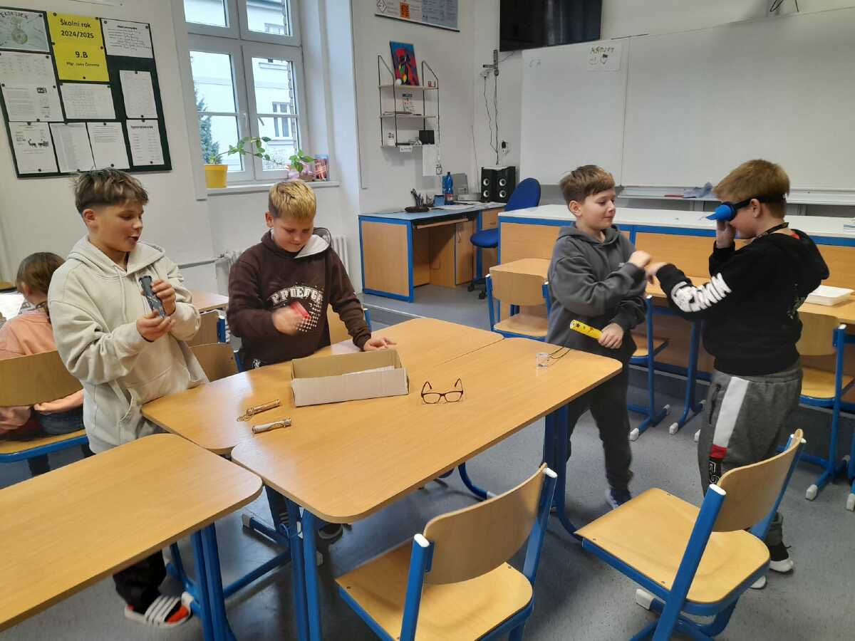 Družinové děti navštívily v tomto týdnu opětovně učebnu fyziky a chemie. Přišly se podívat na učebnu II.stupně, kam budou za pár měsíců chodit na výuku těchto předmětů. Paní učitelka Červená si pro ně připravila několik stanovisť s fyzikalními pomůckami. Pomocí nich děti prozkoumaly řadu zajímavých oblastí fyziky a zjistily, že se vůbec nejedná o obávaný předmět. Některé děti se návštěvy učebny účastnily již podruhé, příjemným zjištěním pro vyučující bylo, že si některé aktivity pamatovaly a dokázaly na ně navázat. Všem dětem hodně radosti v jejich bádání za poznání!