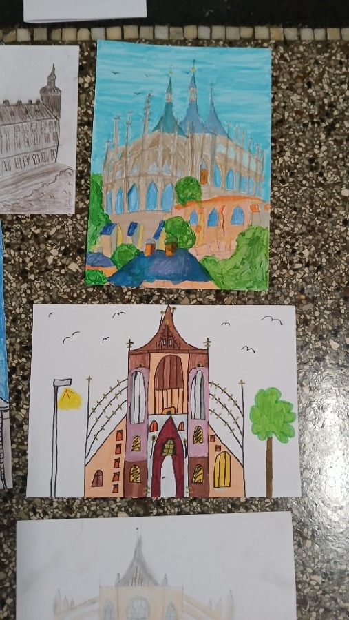 Děti se do projektu hravě zapojily a v galerii si můžete prohlédnout, které obrázky z 6. až 9. třídy posíláme do soutěže. Nejčastěji si žáci vybrali výtvarně ztvárnit tyto kutnohorské památky: chrám svaté Barbory, kostel svatého Jakuba, hřbitovní kostel Všech svatých s kostnicí, Jezuitskou kolej a možnost měli i namalovat naši školu T. G. Masaryka.