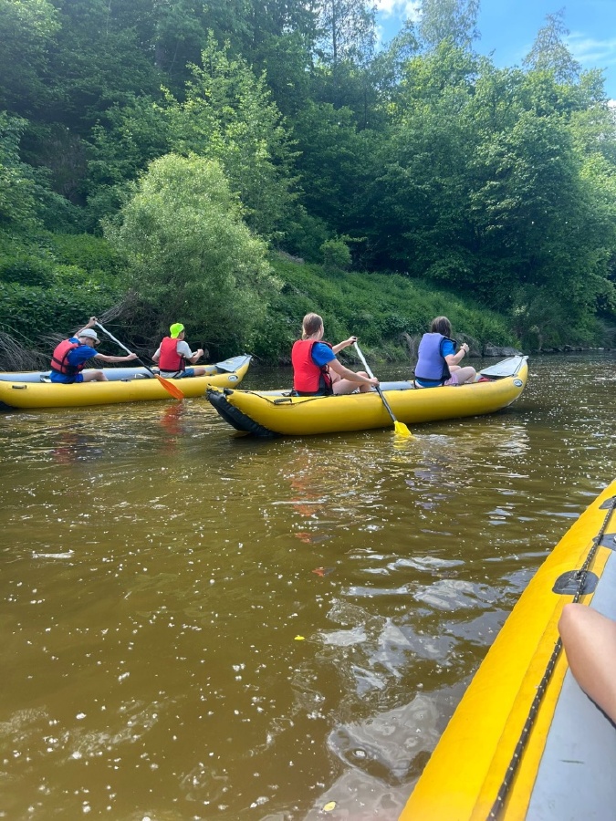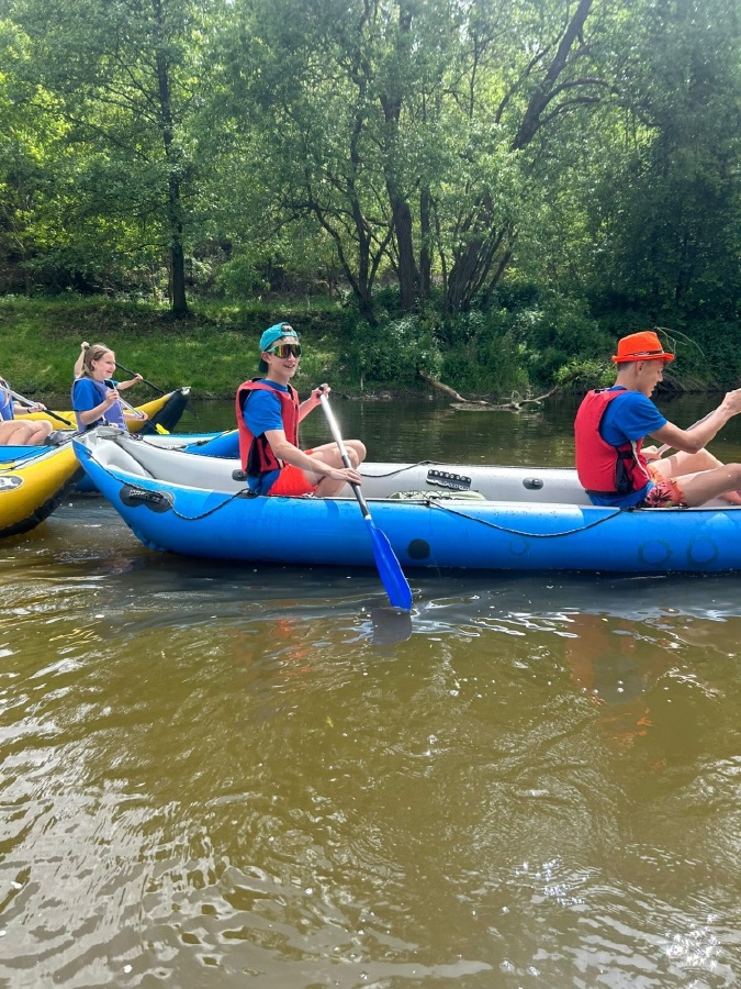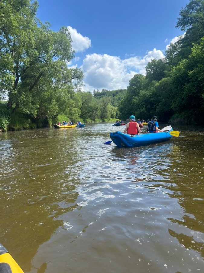 Poslední květnový týden se třída 8.A vydala na několikadenní vodácký kurz na střední úsek řeky Sázavy, aby zažila dobrodružství, která se z učebnic naučit nedají. Pod vedením učitelů se žáci učili ovládat kánoe, spolupracovat a překonávat překážky — ať už to byly sjízdné jezy, proměnlivé počasí, nebo nutnost postavit si stan v mírném dešti.