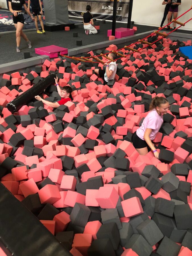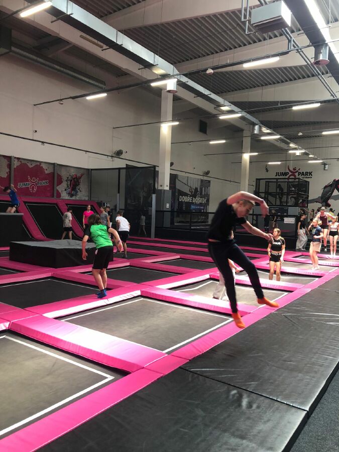 Dne 10. června se třída 7. B vydala ranním vlakem na výlet do Prahy. Naším prvním cílem byl JumpPark v Letňanech – obrovská hala plná trampolín a zábavných atrakcí. Žáci si zde mohli doslova „skočit do nového dne“. Skákali, soutěžili, zkoušeli salta i další triky a u toho si užili spoustu legrace. Nechyběla ani týmová hra ve skákacím dodgeballu, při které se pořádně vyřádili.