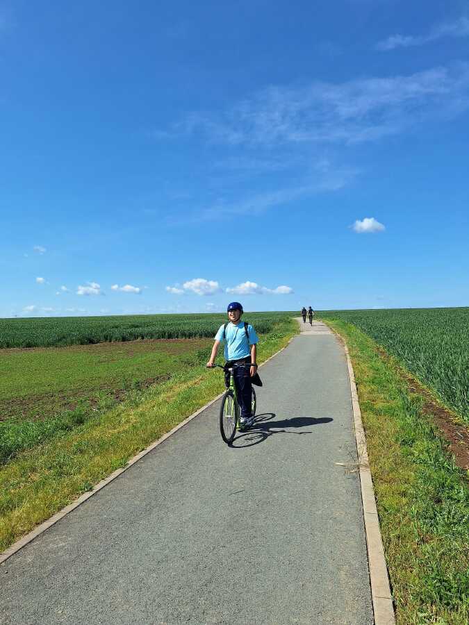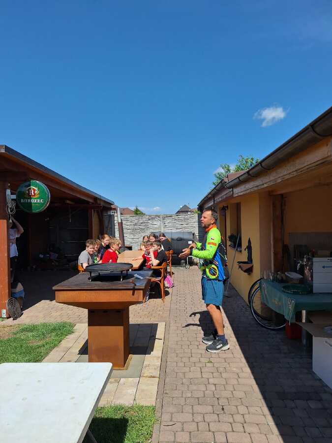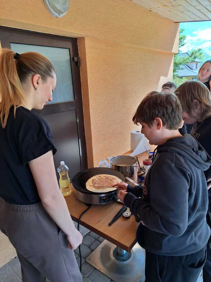 V pátek 23. května 2025 se žáci 6. ročníku vydali na koloběžkový výlet z Čáslavi do Vrdů a zpět. Cesta vedla krásnou krajinou a nabídla spoustu pohybu i zábavy. Ve Vrdech si děti samy připravily oběd – hamburgery, pizzu a palačinky. Společné vaření je bavilo a jídlo jim na čerstvém vzduchu obzvlášť chutnalo. Výlet si všichni užili a odvezli si spoustu zážitků.