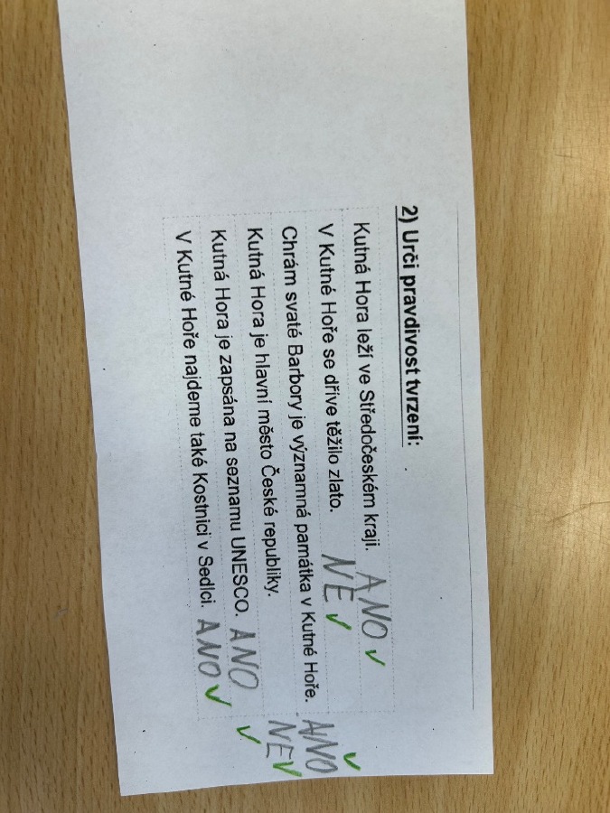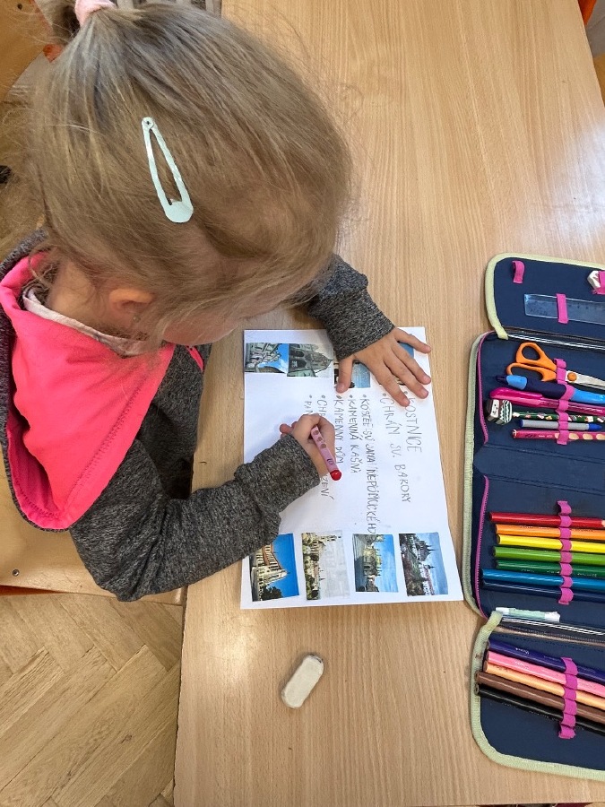 Děti z 1.B zakončily projekt o našem městě. Pomohla nám metoda skládankového učení. Výstupem z této hodiny byla tzv. propustka, kdy děti prokázaly znalosti získané během projektu a k tomu si vyrobily jednoduchý lapbook s obrázky a názvy památek Kutné Hory.