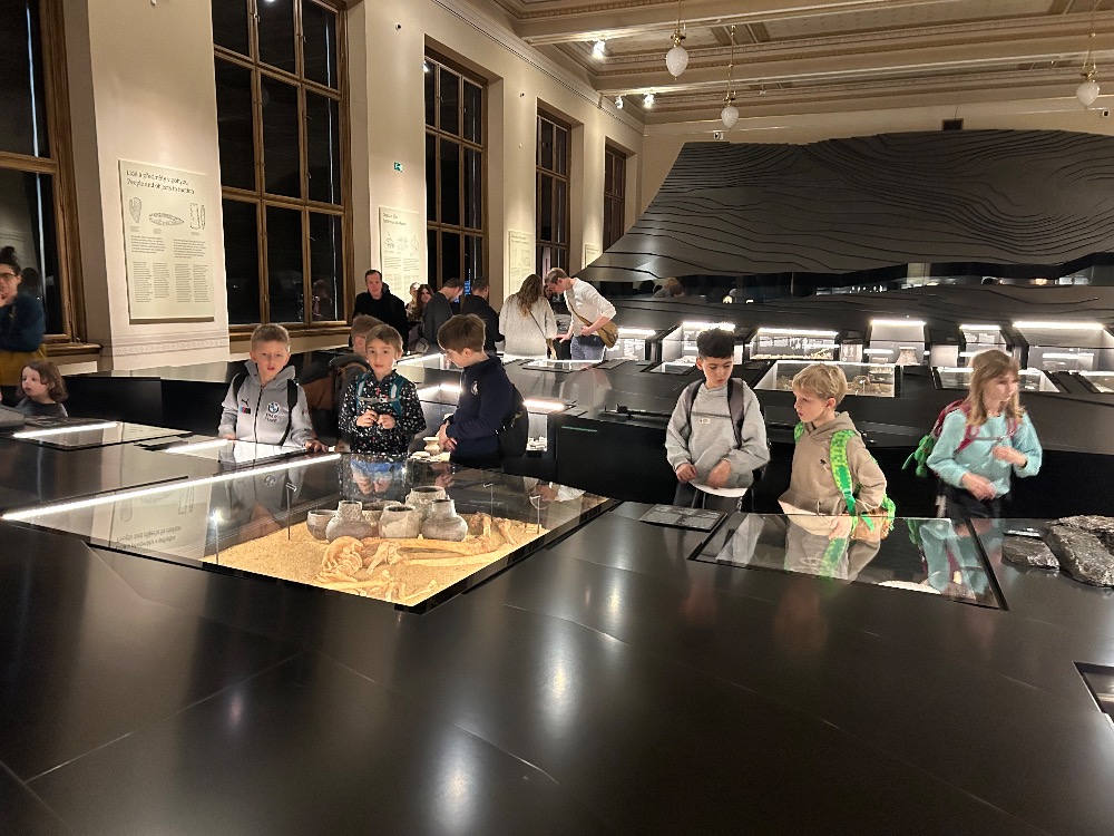 V sobotu se téměř polovina děti z 2.B vydala na výlet do Prahy. Výprava začala v Národním muzeu, kde jsme zhlédli expozici Evoluce. Pak jsme nasáli vánoční atmosféru na Náměstí Míru a odtud naše kroky vedly do Žlutých lázní.Vydali jsme se na pouť od antických chrámů k moderním divům architektury a symbolům. Nechali jsme si vyprávět příběh Evropy vytvořený z milionu světel.