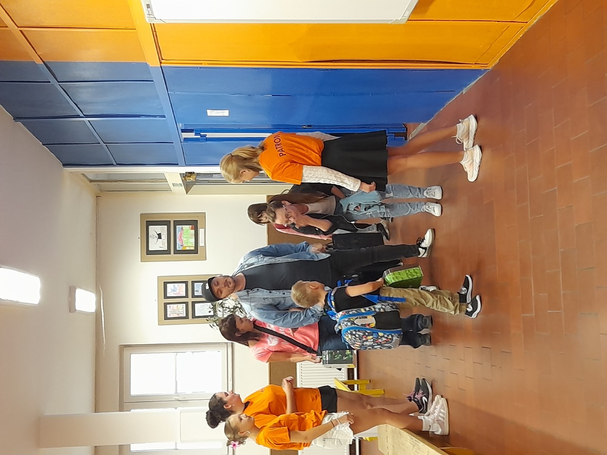 V průběhu prvního školního týdne pomáhali patroni, spíše patronky, prvňáčkům. První školní den jim společně s paní učitelkou třídní předaly symbolické klíče od naší školy a v dalších dnech je doprovázely ze šatny do třídy, pomáhaly s donesenými věcmi a zodpovídaly dotazy rodičů.